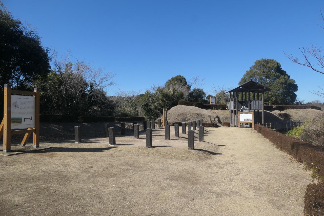 メインとなる第一曲輪へと続く第二曲輪に入りました。中央の柱群は此処に建物が建てられていた事を指します。
