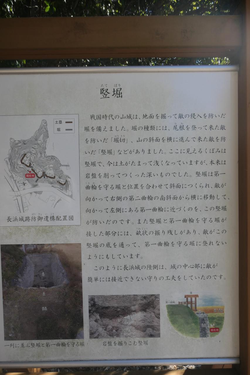 第一曲輪と第二曲輪を分断する堀です。その背後から先程見学した竪堀に繋がっています。