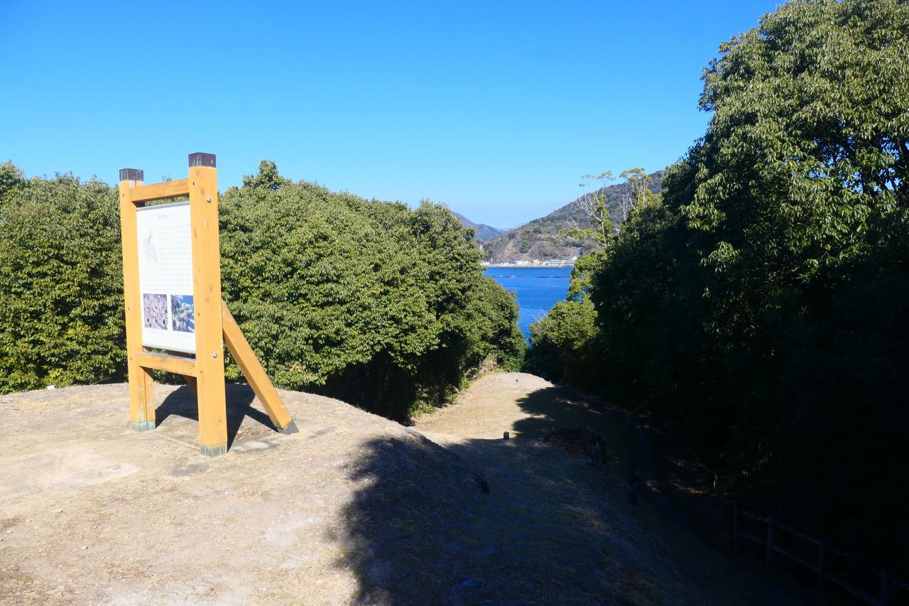 海から侵攻してくる敵勢力を迎え撃つ為設けられた曲輪と考えられます。