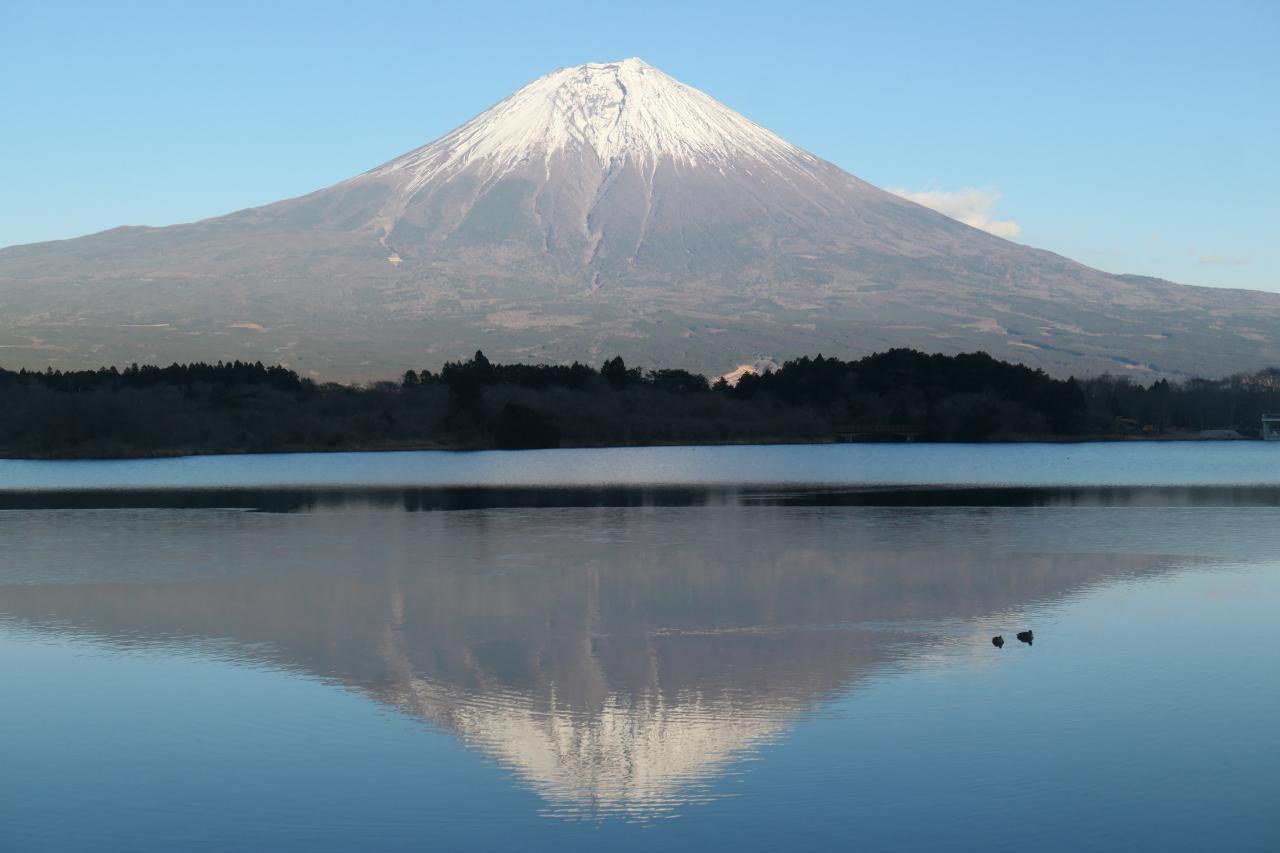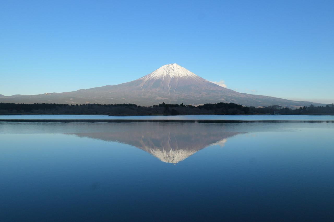 逆さ富士の方が、実像よりクリアに見える不思議な光景。パーフェクトに逆さ富士が出来ると、こんな光景になるんだ…。圧倒されました。