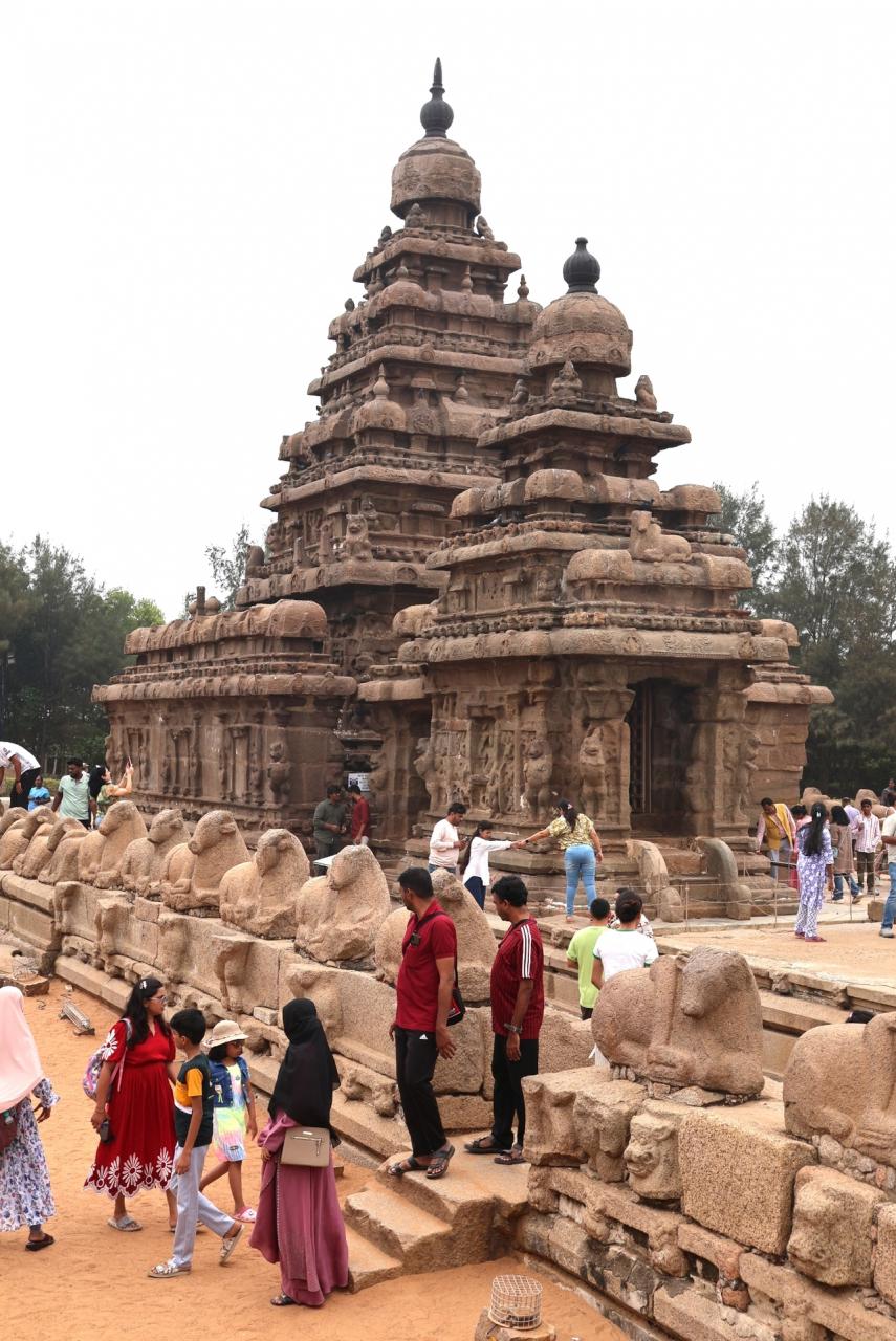 海岸寺院はパッラヴァ朝時代にドラヴィダ建築様式で切り石を積み上げて築かれた石造寺院です。