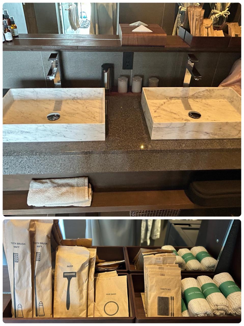 沖縄生まれ「CHIMJUN」のバスアメニティと「ペタル―ナ」のスキンケアキットなども用意されています