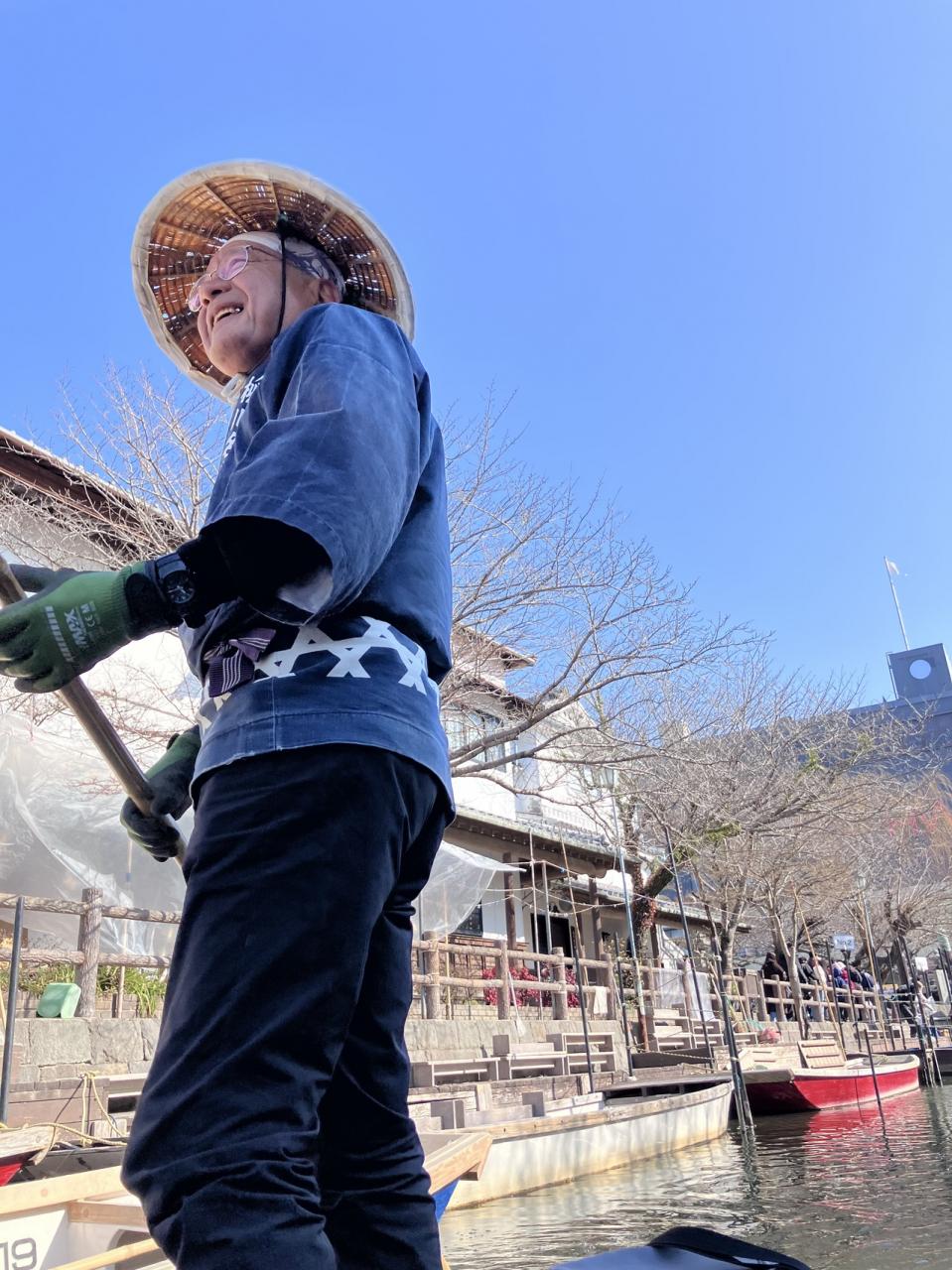若松屋を出て歩いていると、船頭さんが舟から橋へ登って