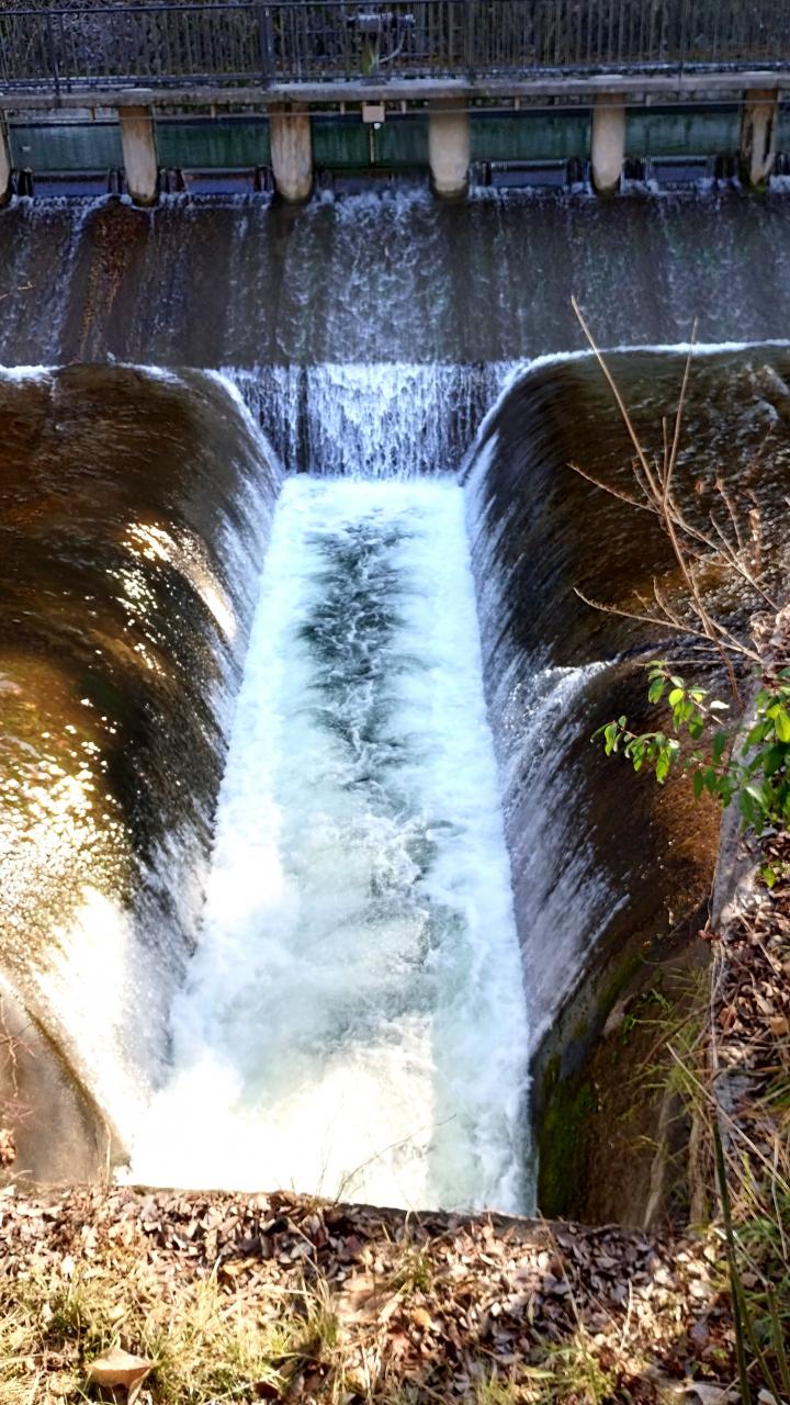 インクライン手前を右方向に進むと越流堰があり、