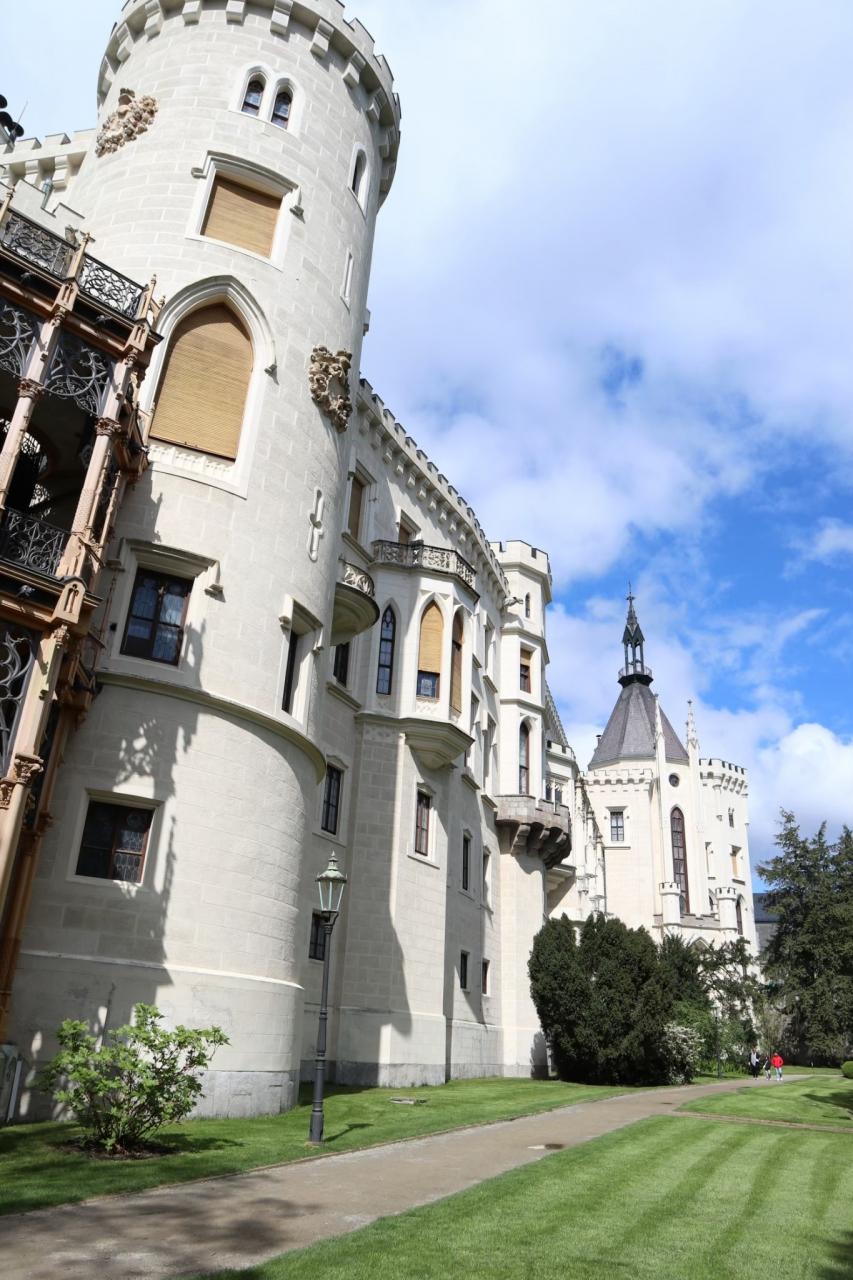 白亜の城、フルボカー城。イギリスのウィンザー城を模して作られたネオゴシック建築の城。19世紀にこの辺りを治めていたシュワルツェンベルク家の居城でもあり、チェコで最も美しい城とも称されています。