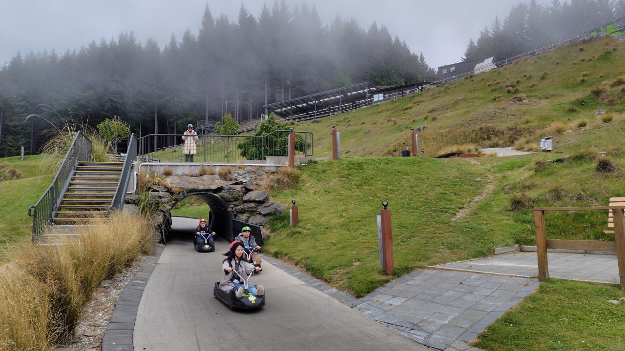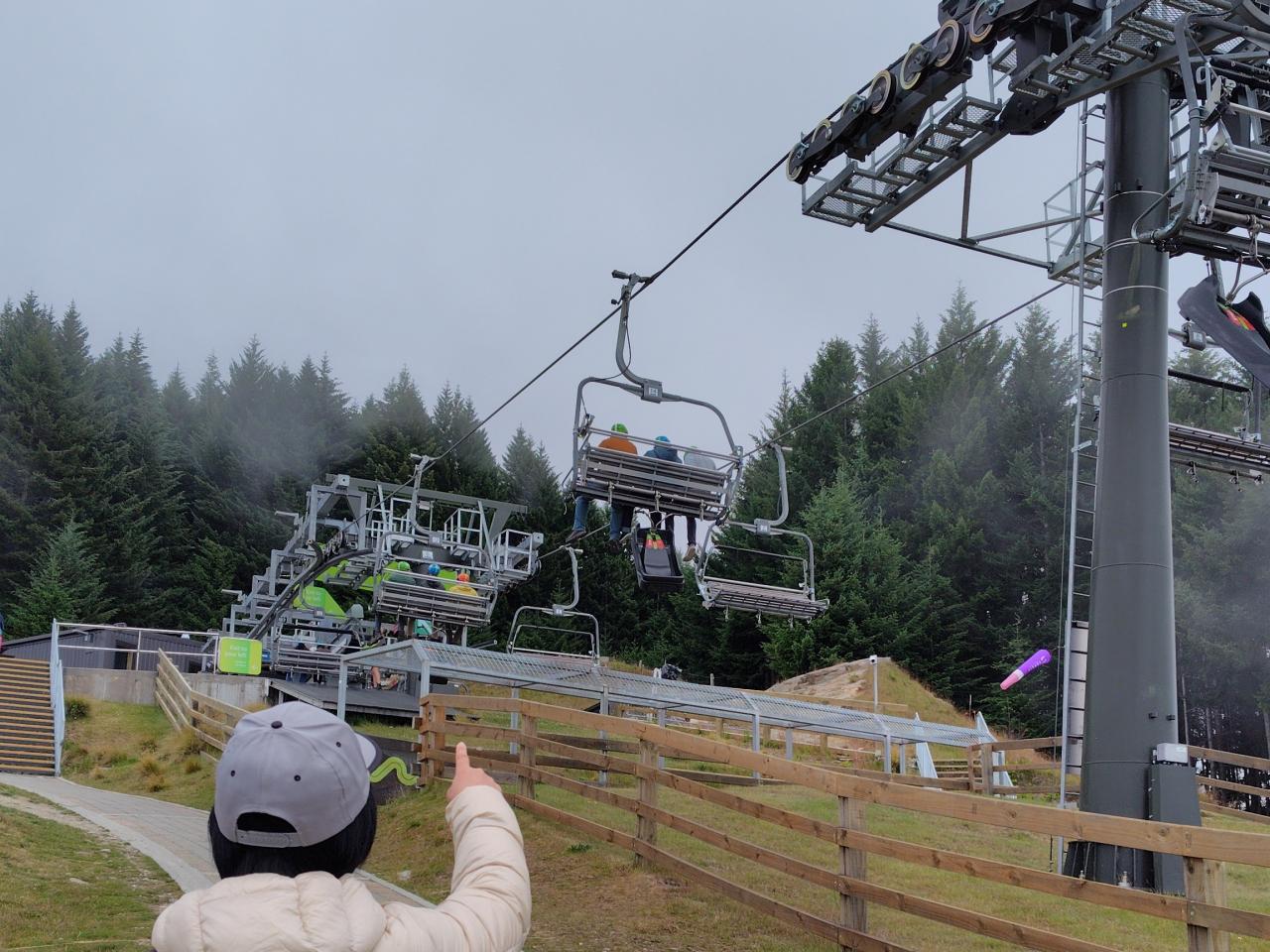 頂上駅からさらに上にはスカイライン・リュージュというカートがあって、親子連れなどがクワッドリフトで次々と上がってはリュージュで下ってきました