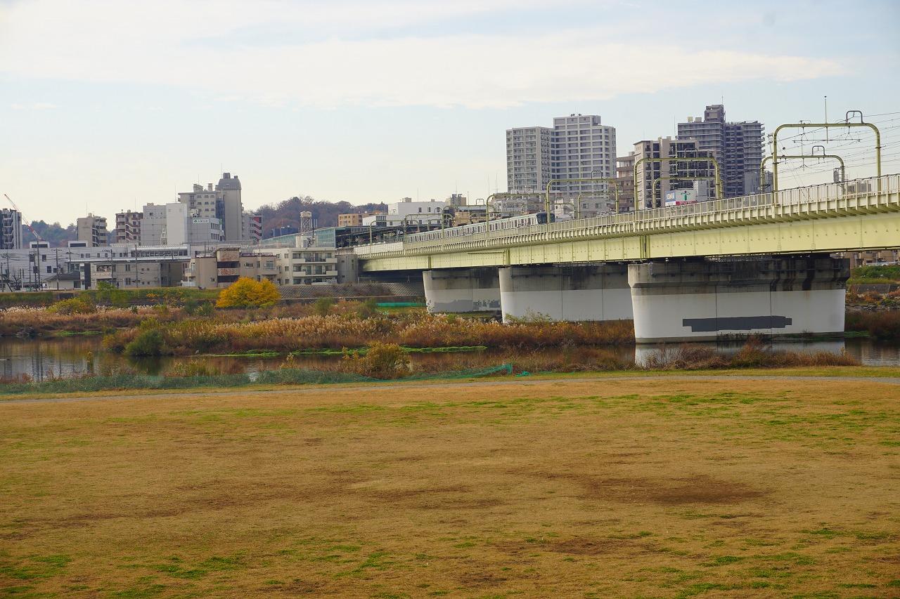 多摩水道橋の南側に、小田急の鉄橋があります。 -