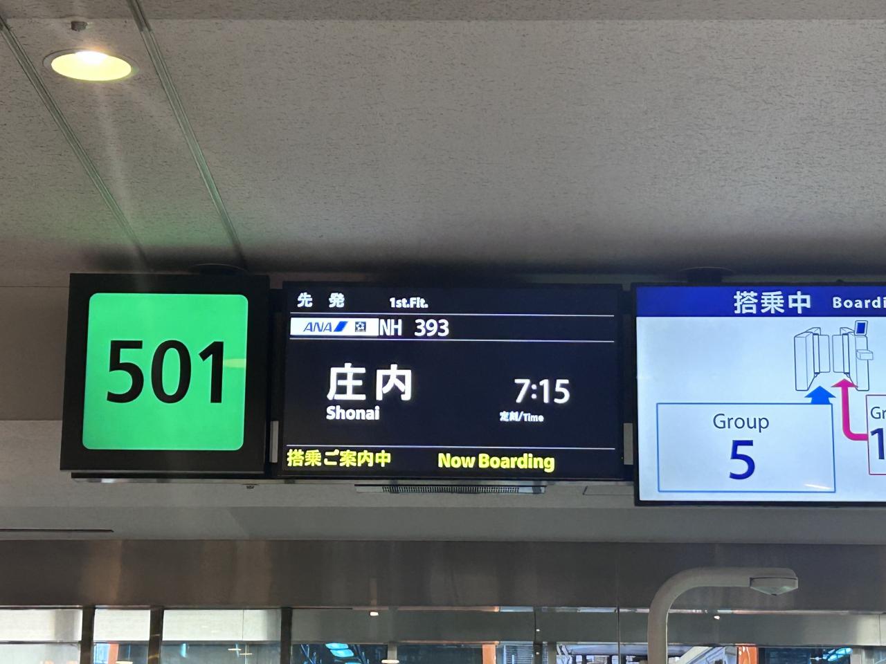 羽田7:15→庄内8:15(ANA)