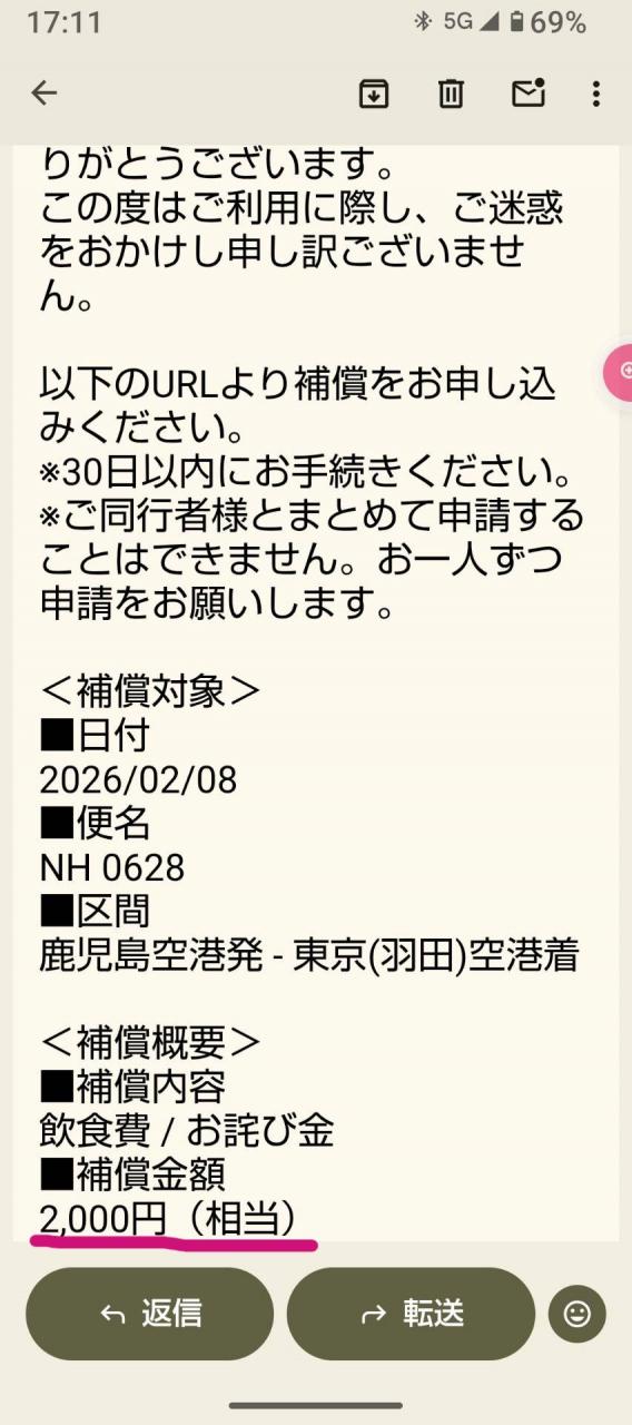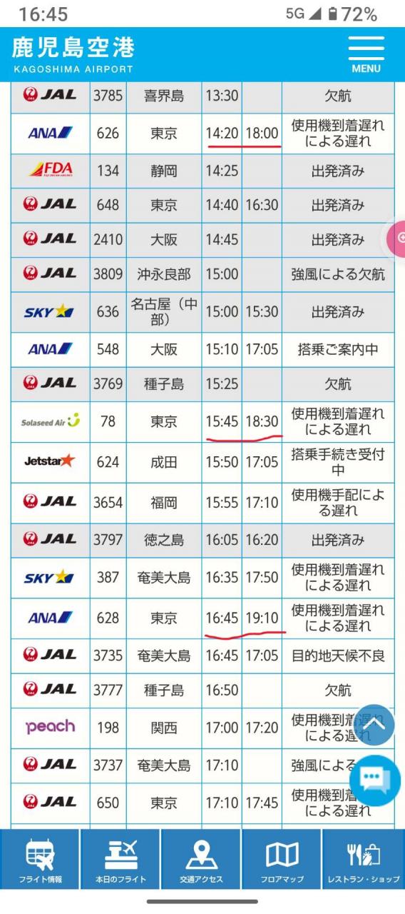 なんか ANA からメール来てて、遅れるのかなとは思ってた