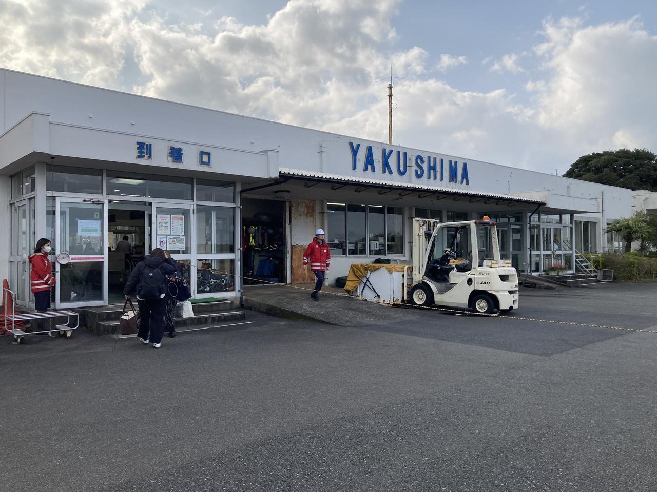 行動食として持っていたソイジョイとインゼリーをターミナル内で流し込み、バスに乗車宮之浦港フェリーターミナル 乗り物