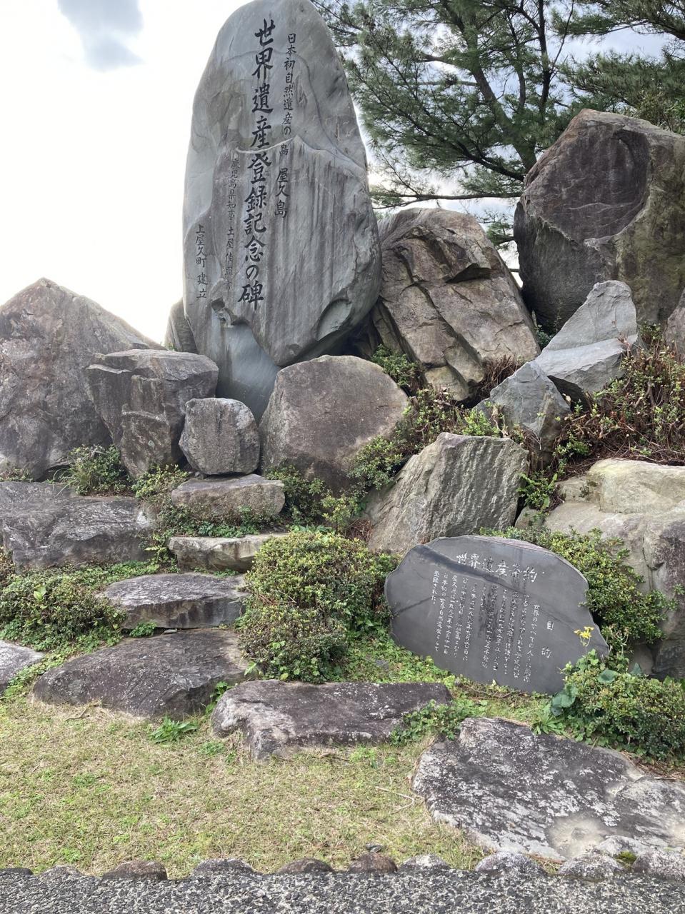 宮之浦港近くの世界遺産登録記念の碑 -