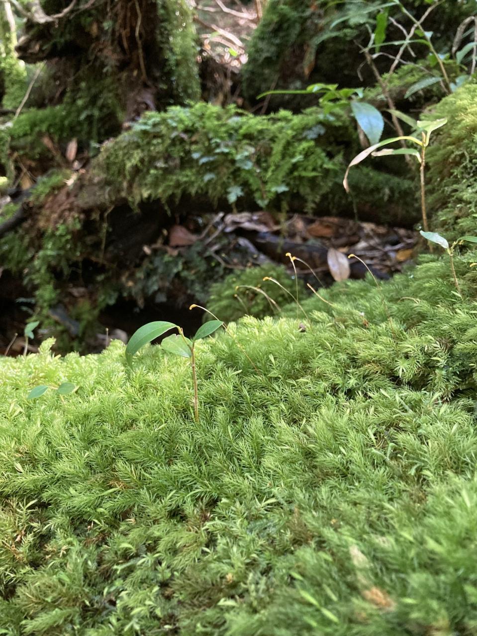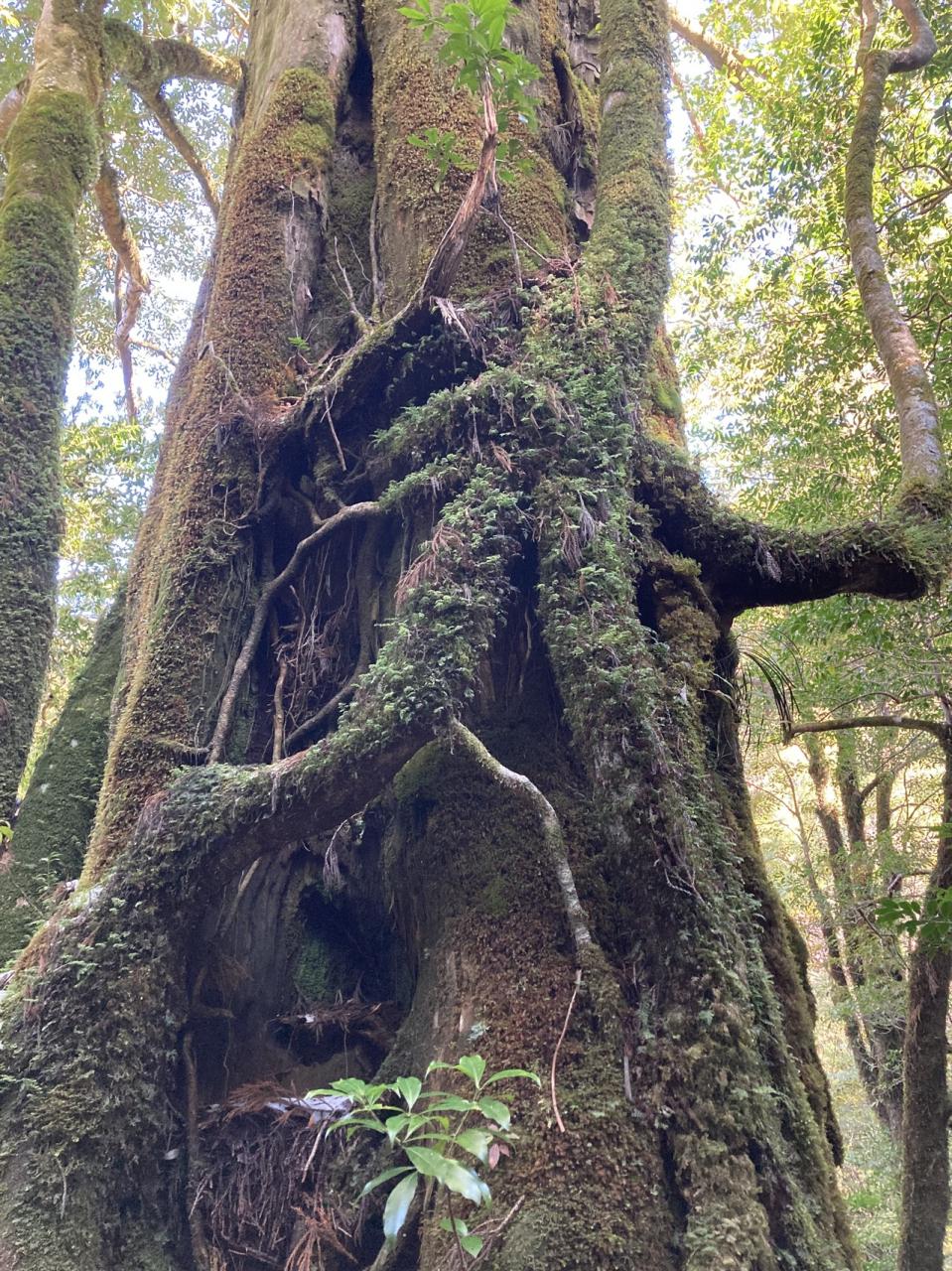 樹齢3000年の弥生杉は、2024年8月の台風で残念ながら倒れてしまいましたが、倒れた木を土台にして新たな苔や植物、杉が生えてきてまた森が形作られるそう