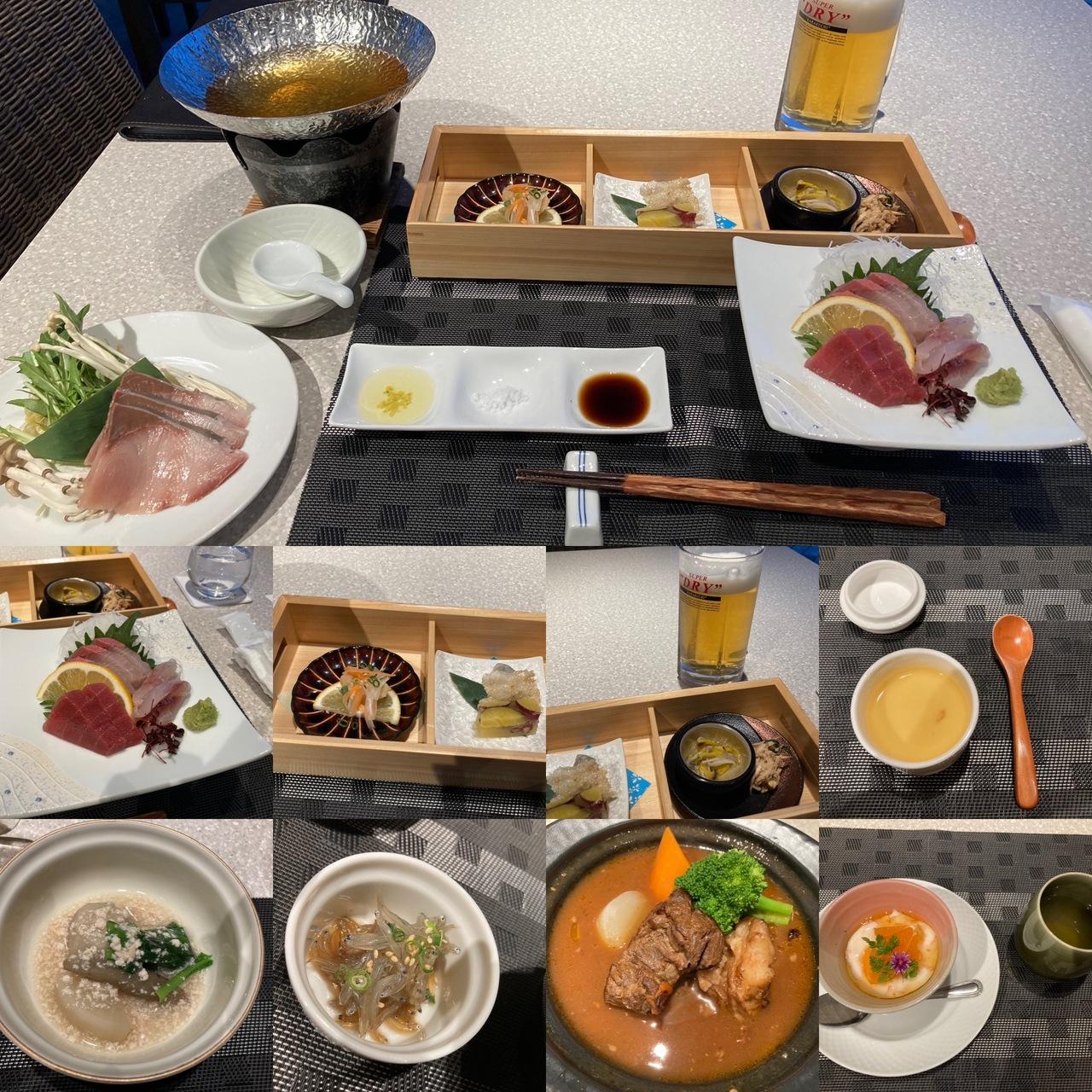 ホテルの外の食事処はどこも少し距離があったので、2泊とも後から夕食を付けてもらいました