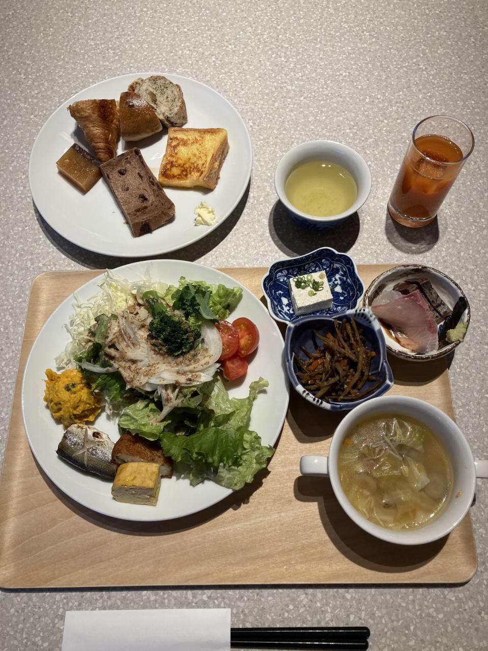 朝食もホテル内のレストラン「しゃくなげ」でブッフェスタイルです