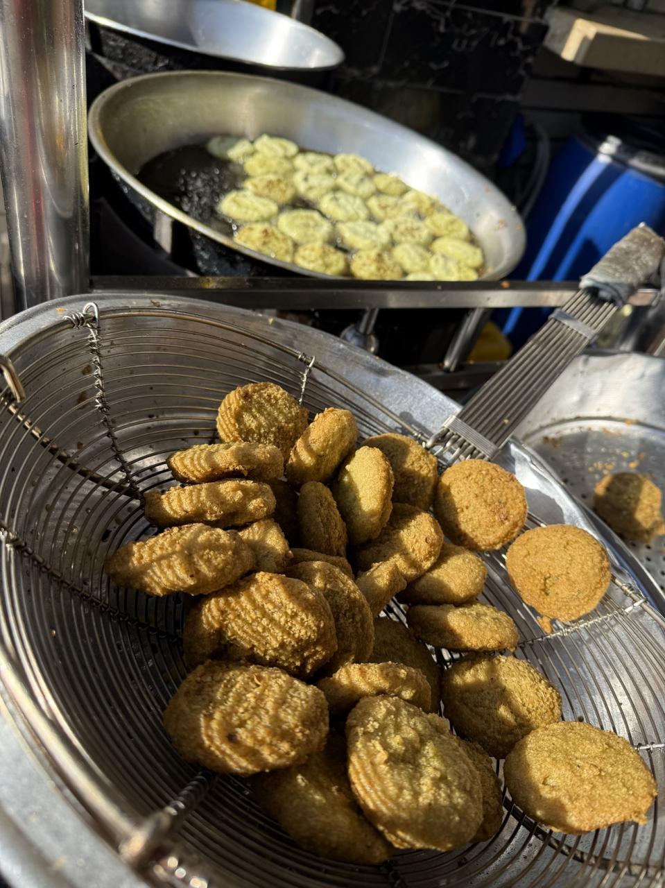 この揚げたての豆のコロッケも、試食させて貰いました。
