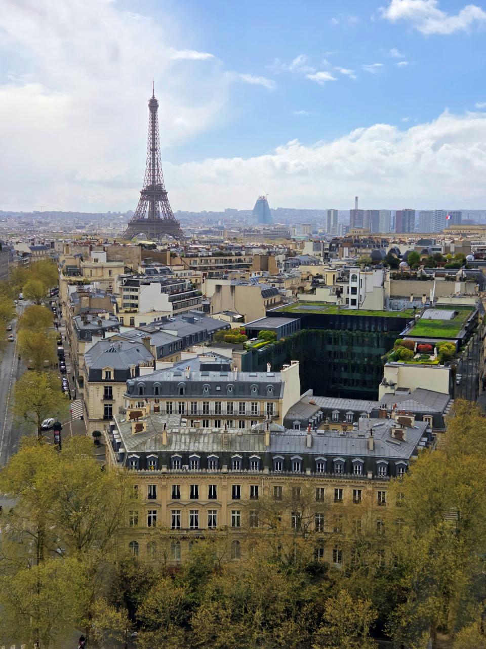 凱旋門の上からエッフェル塔を望む景色。