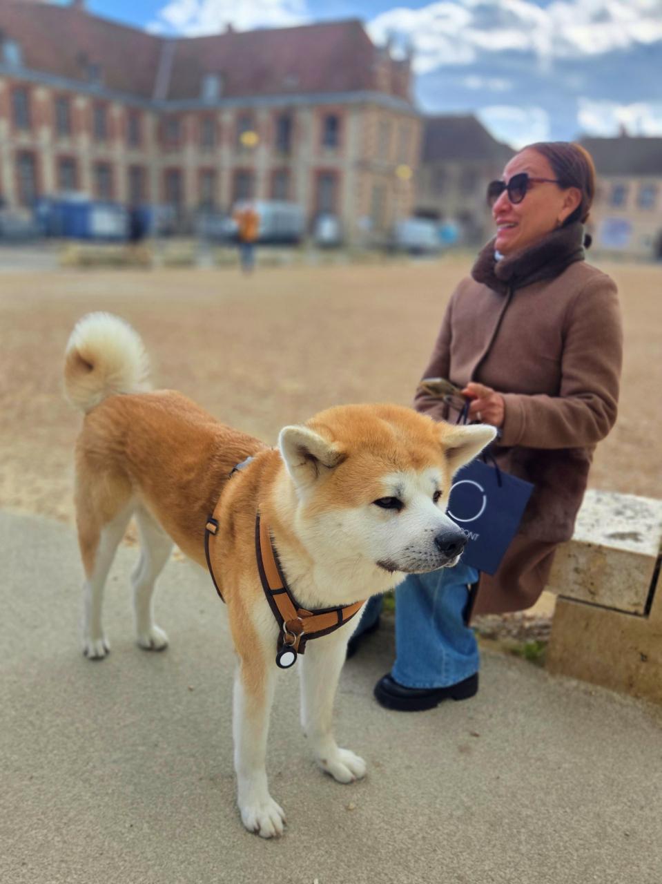 大聖堂の前で秋田犬を連れたマダムに出逢った。