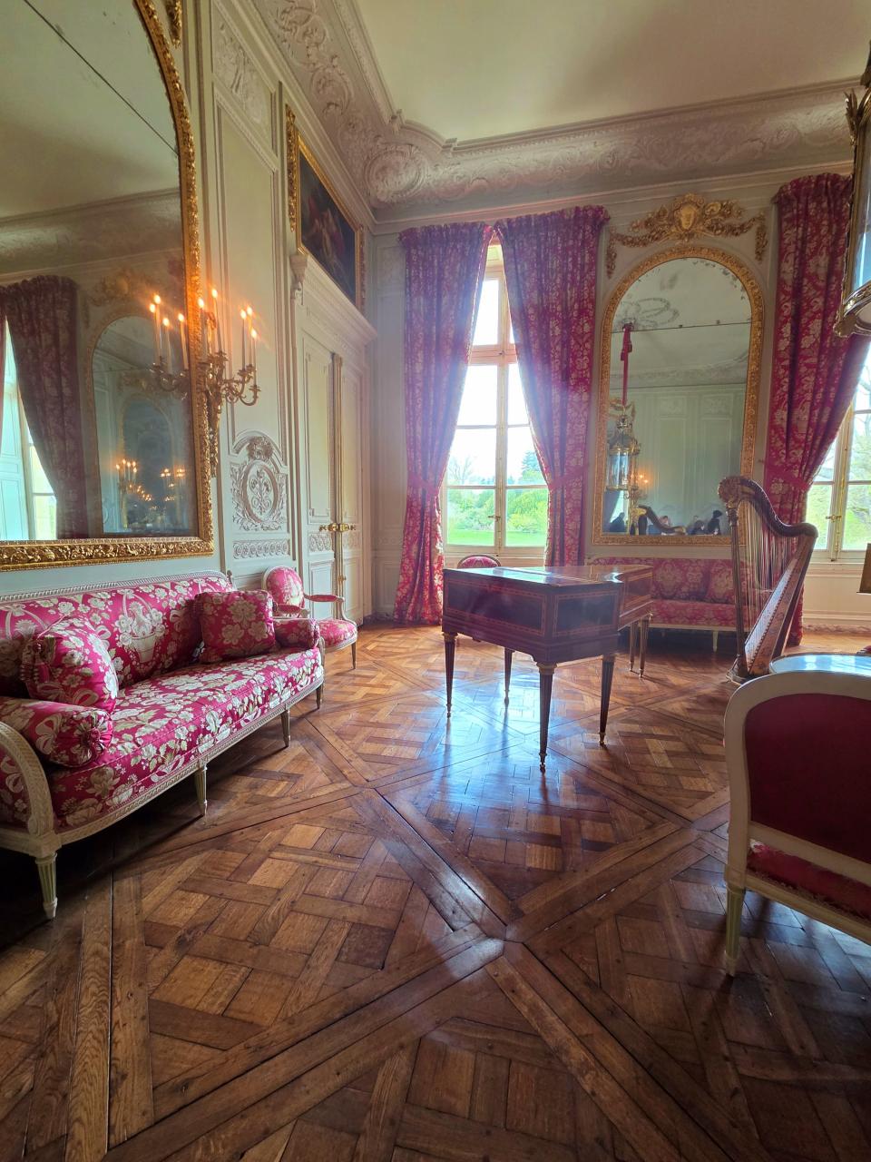 ここも十分豪華だけど、煌びやかなバロック建築のヴェルサイユ宮殿とは違って、女性らしい可愛さを感じるお部屋。