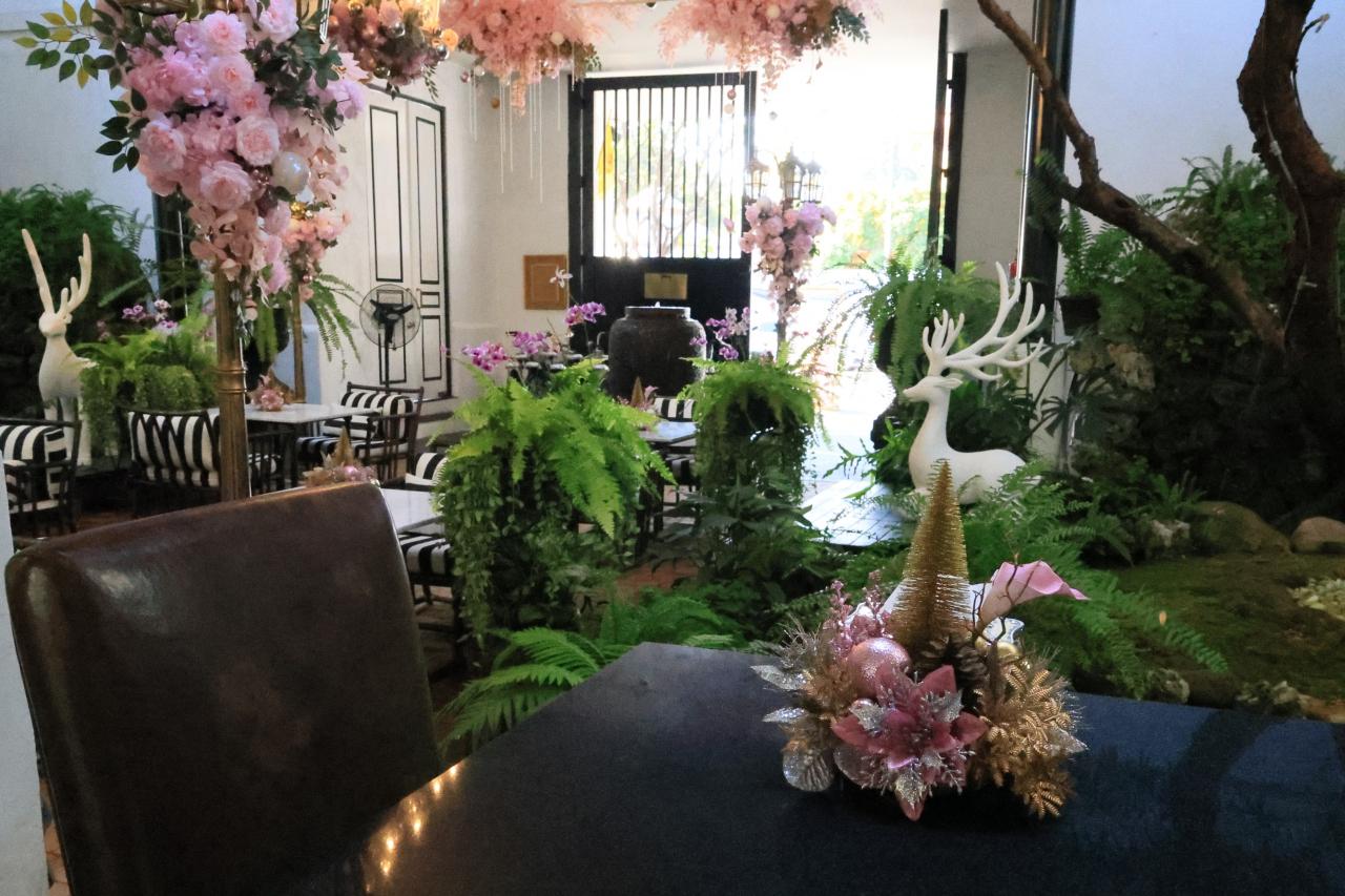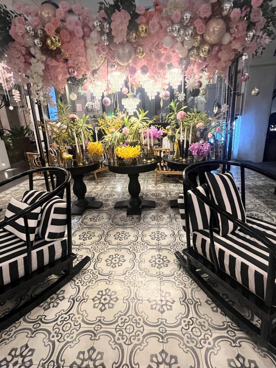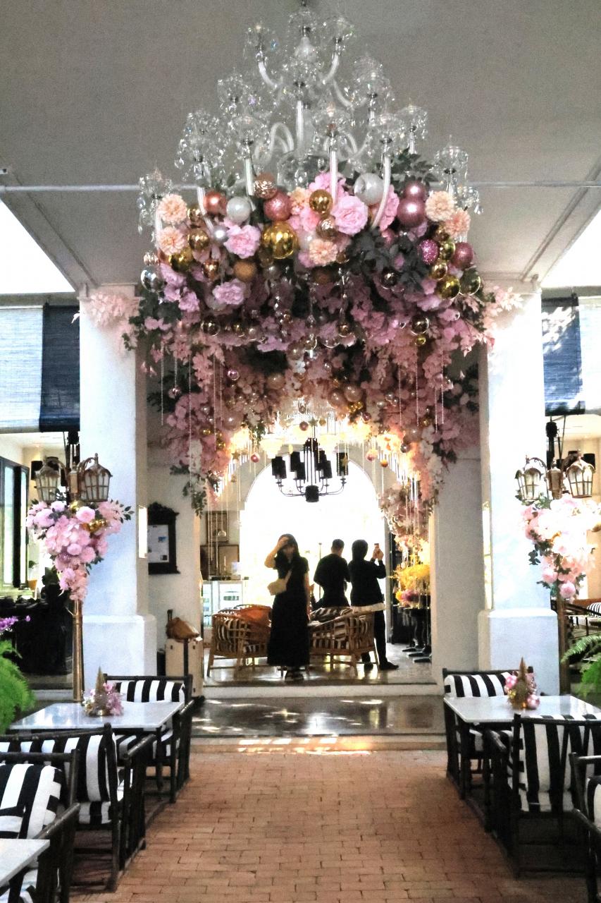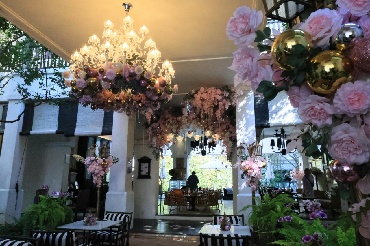 ホテルのロビー周辺はピンクのお花があしらわれていて、まあ可愛い事!