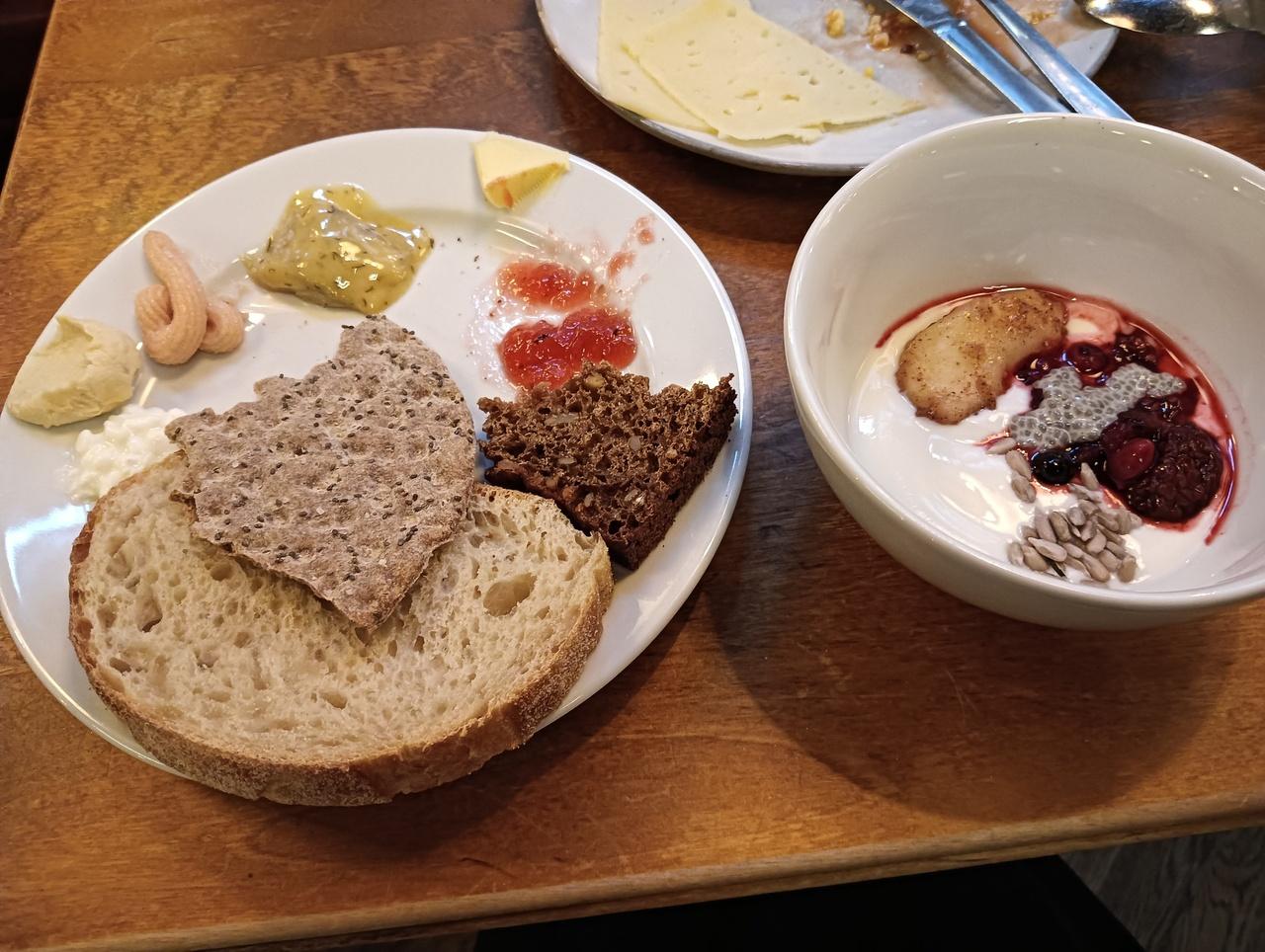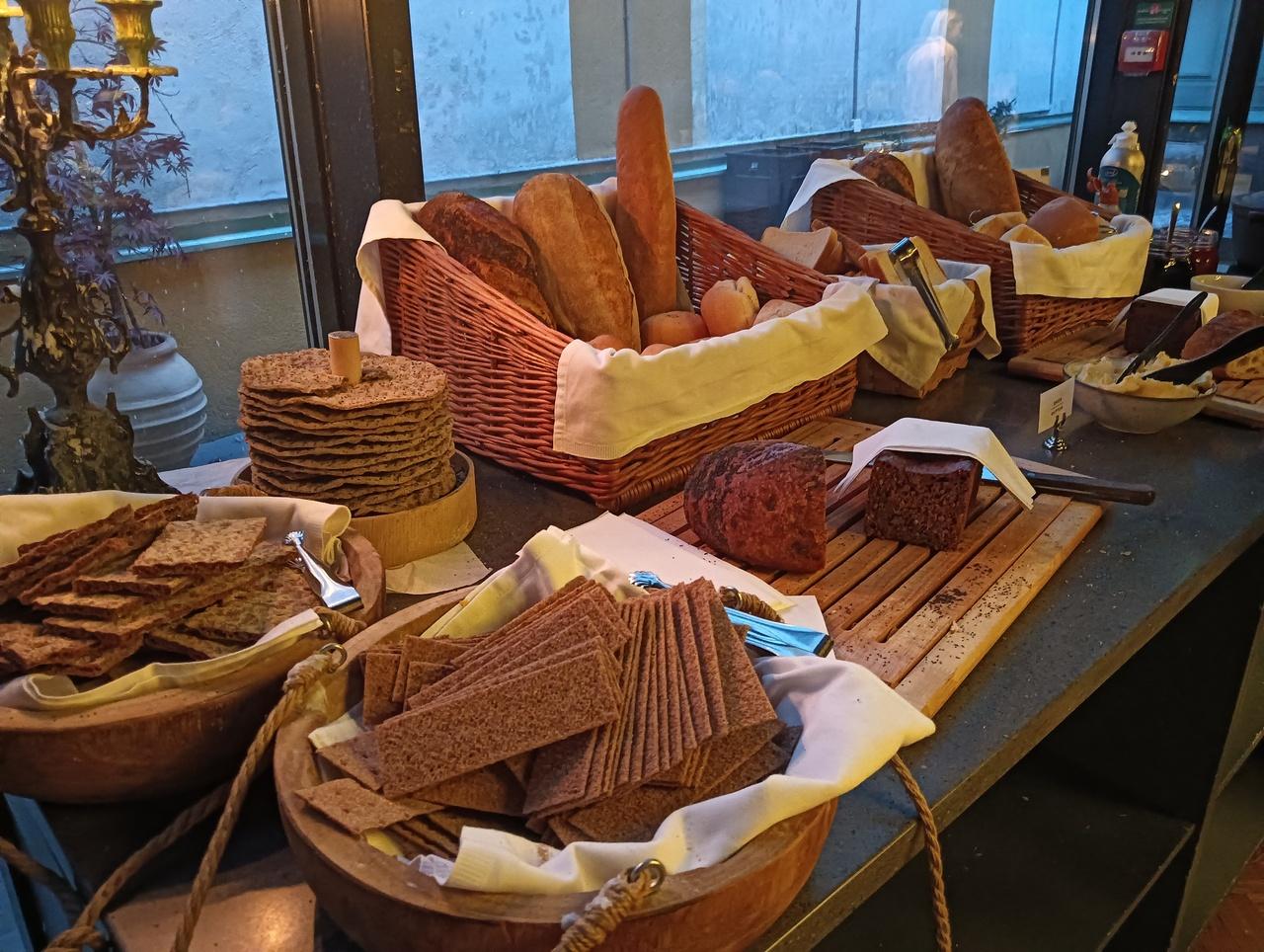 クラッカーが美味しくて、明太子チューブとの相性抜群でおかわり。黒パンは好みではなかった。
