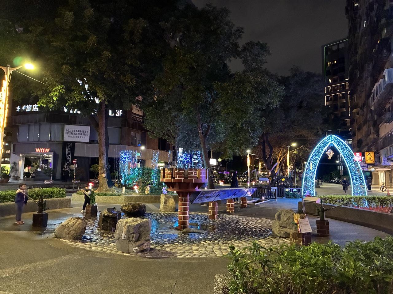 途中ライトアップされた公園の横を通って、ホテルから歩いて行けるのは遼寧街夜市。 -