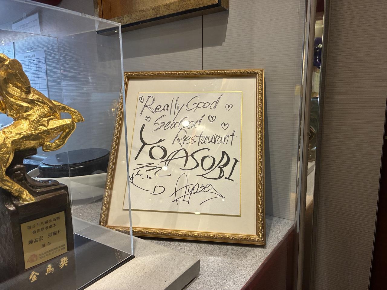 トロフィーの横に色紙も飾っています。
