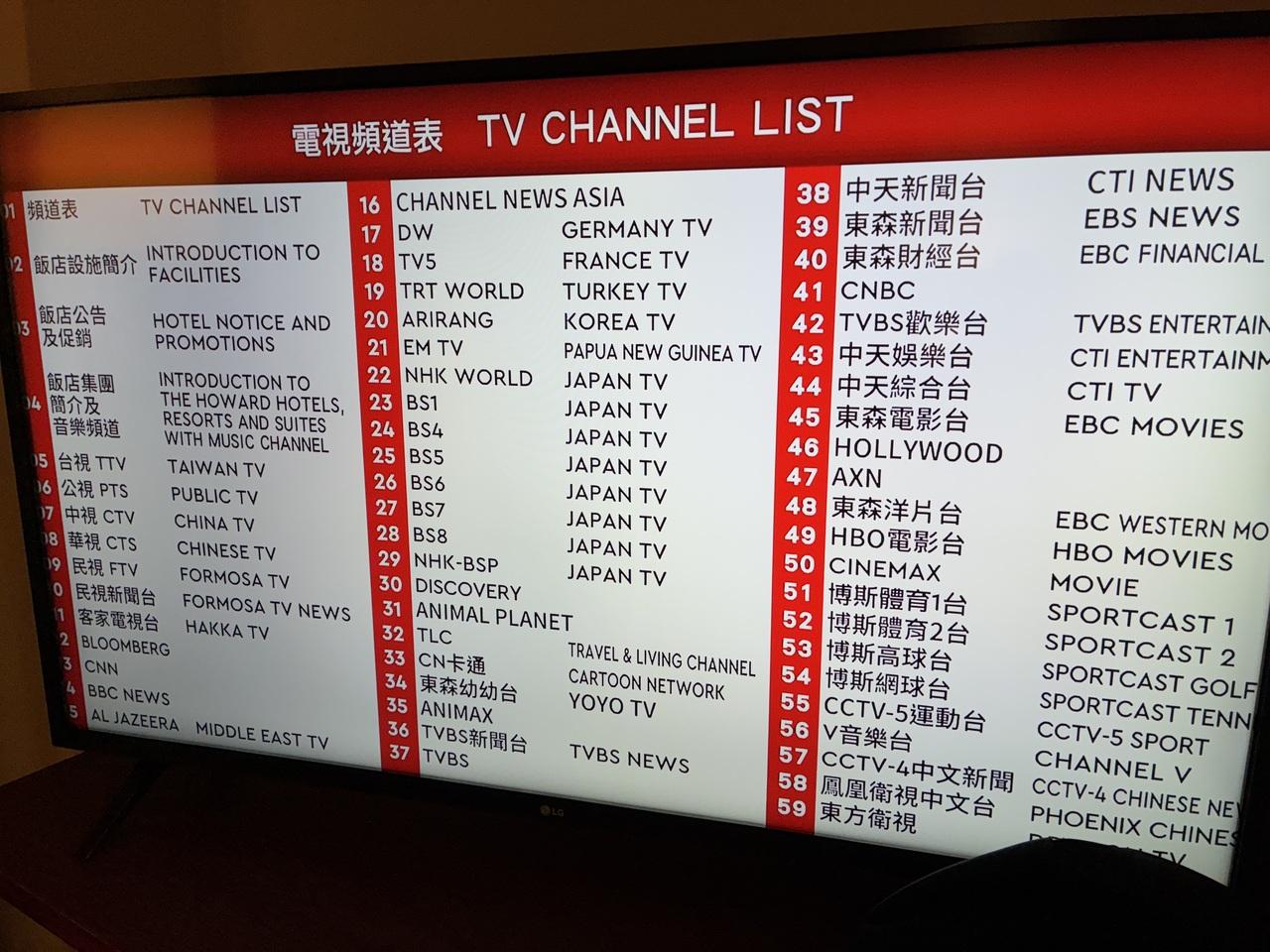 お部屋のテレビは59のチャンネルが見られます。