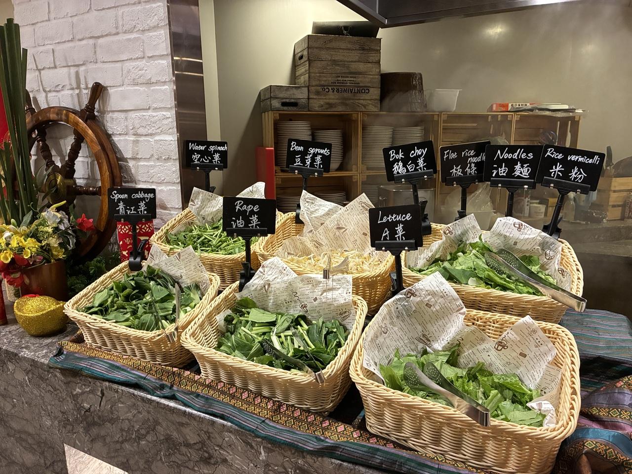 右上の3種の麺からひとつ選び、野菜と茹でてもらいます。