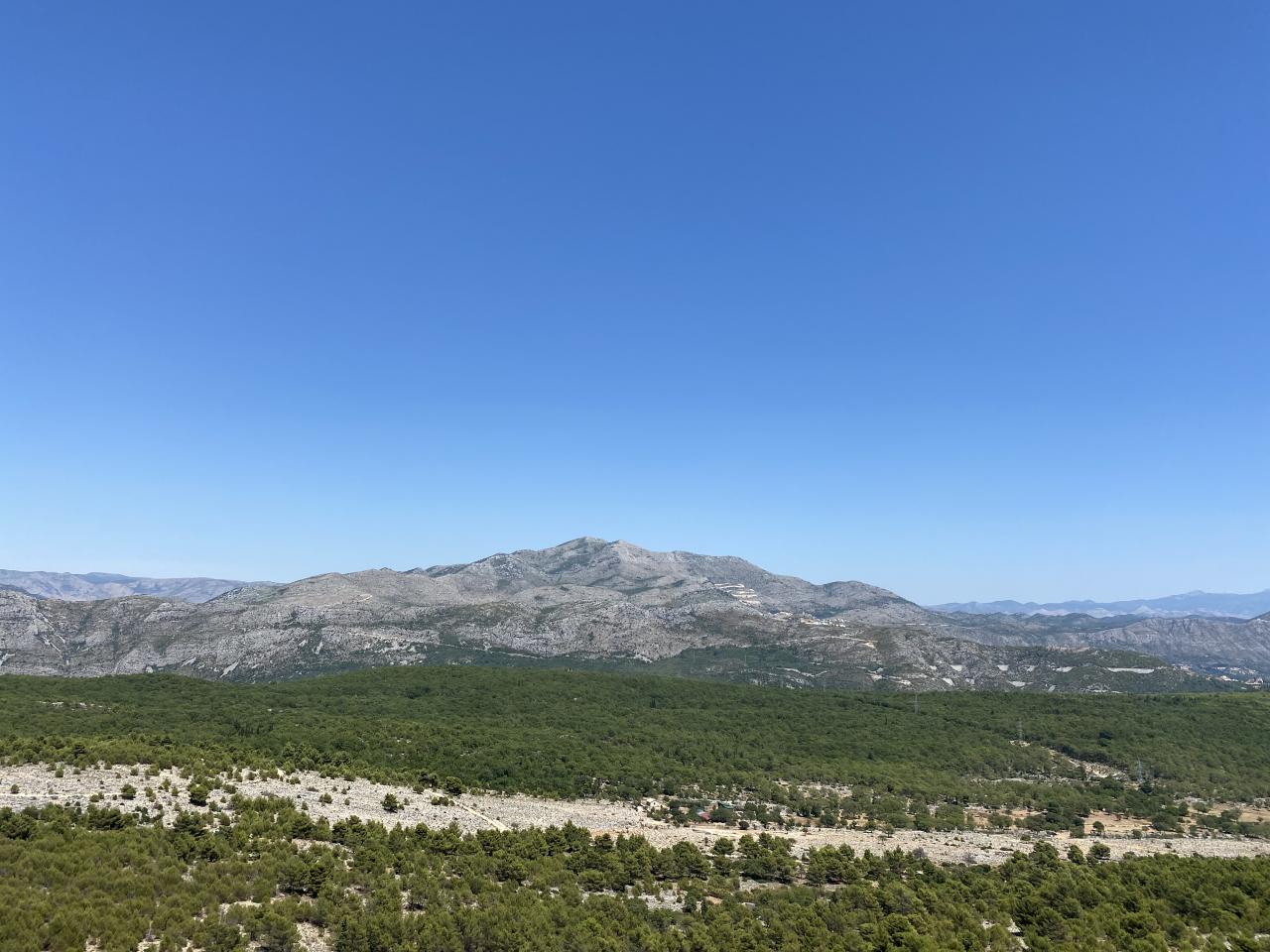 ドゥブロブニク旧市街地までのバス車内からの景色。