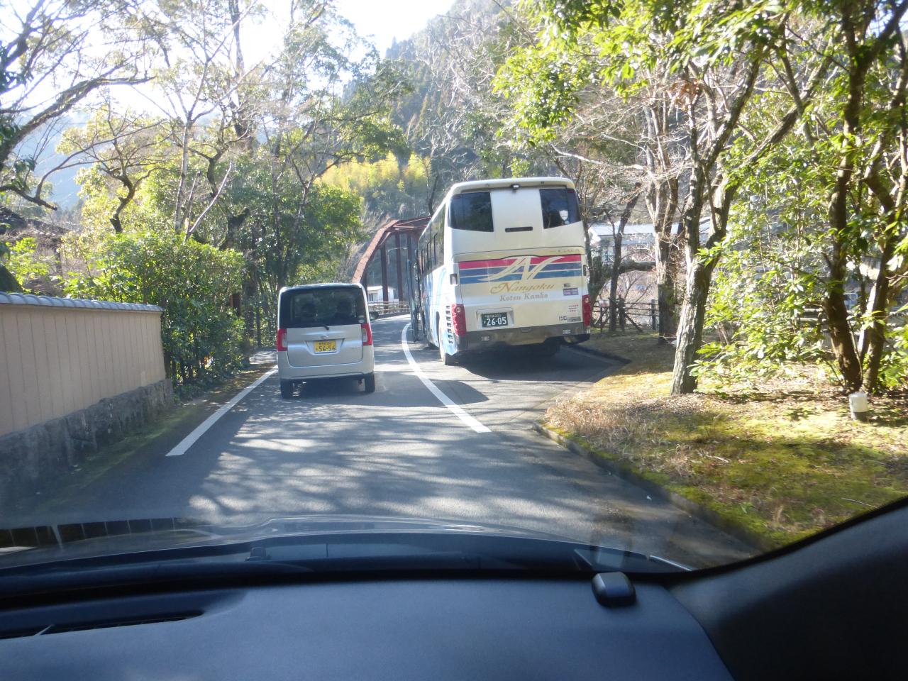 こんな狭い所に大型観光バスが停まっていました。
