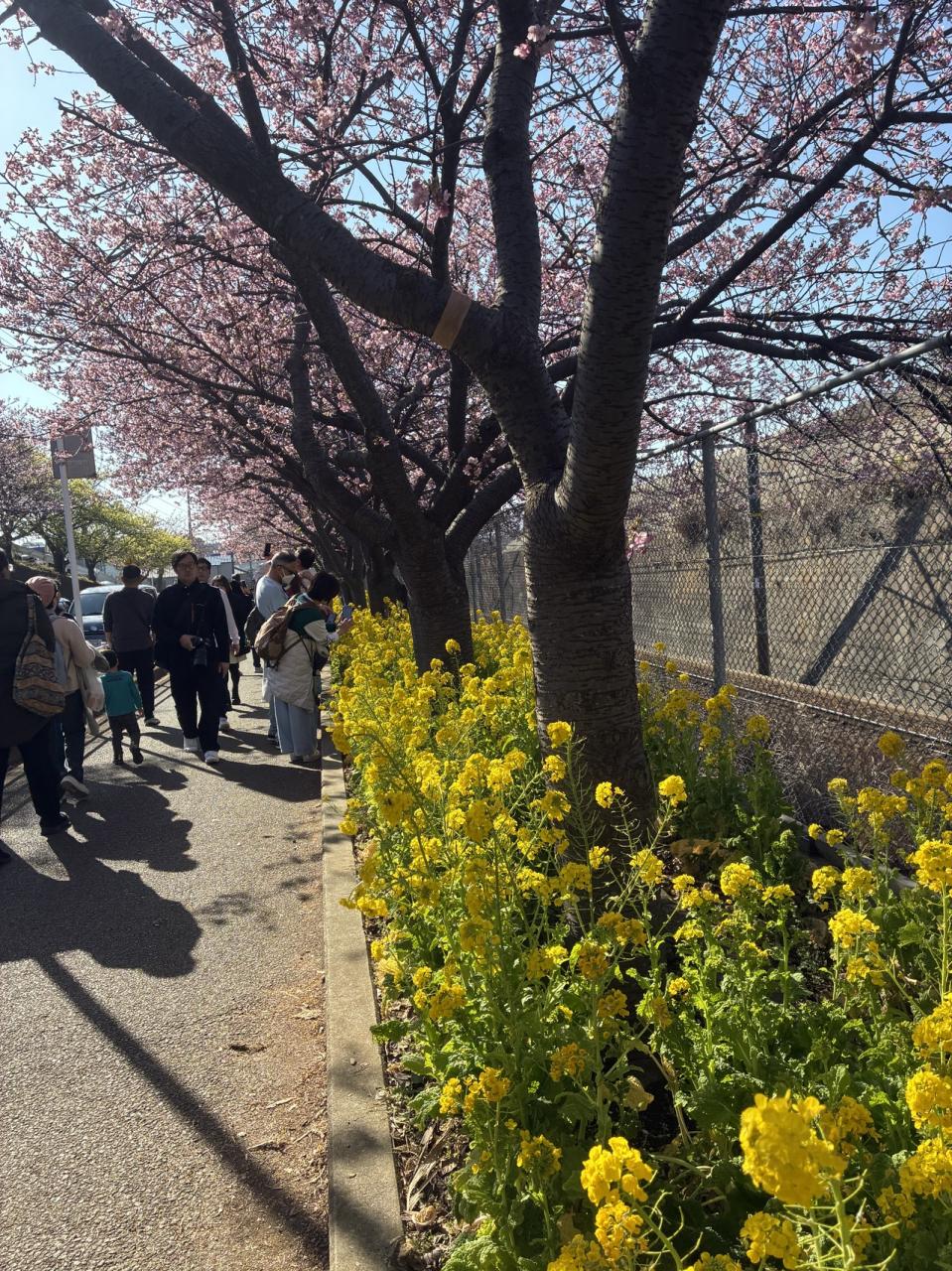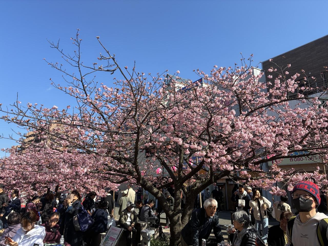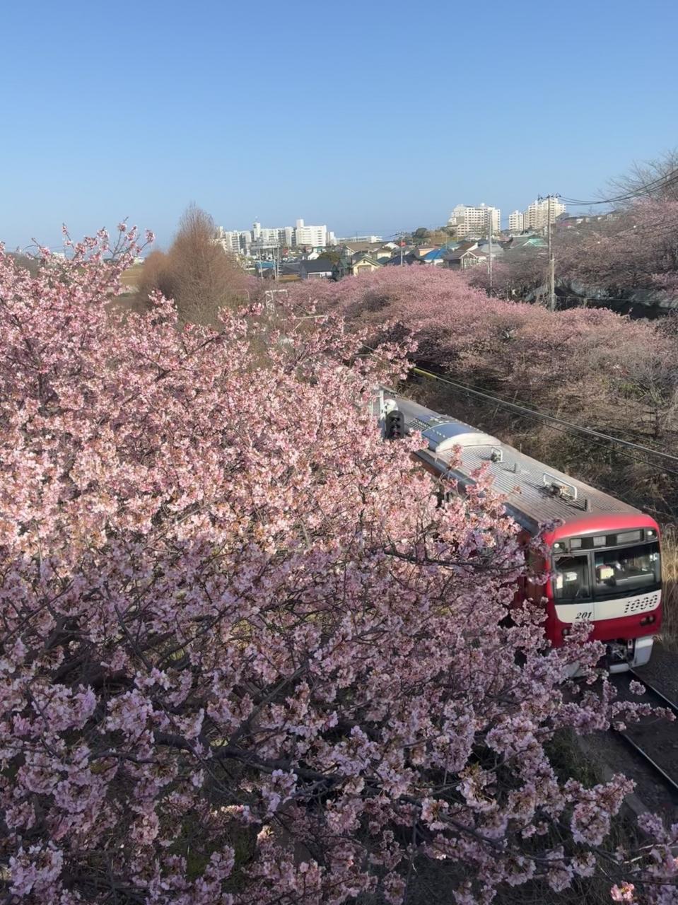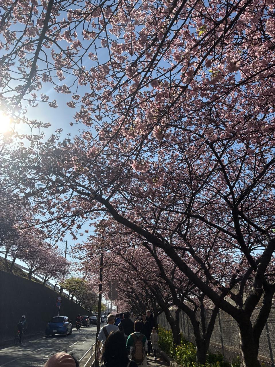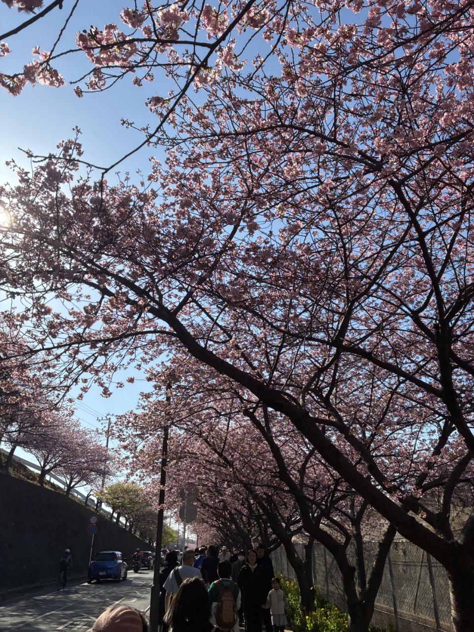 河津桜と言えば伊豆河津町が有名で、そちらには車で何度か行ったのですが、最近は三浦海岸も人気のスポットになっています。