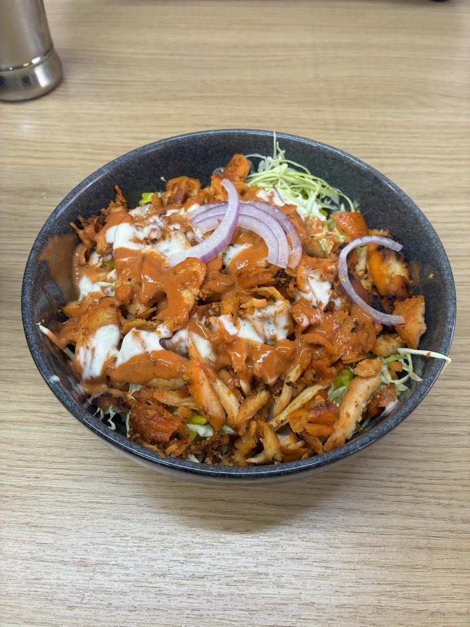 ケバブ丼を頼みました。しかしこの店、インド系かパキスタン系か判りませんが、注文の内容、配膳の順や内容、料金など、すべてグズグズでした。料金は、何度やっても計算違いで(安く)ww