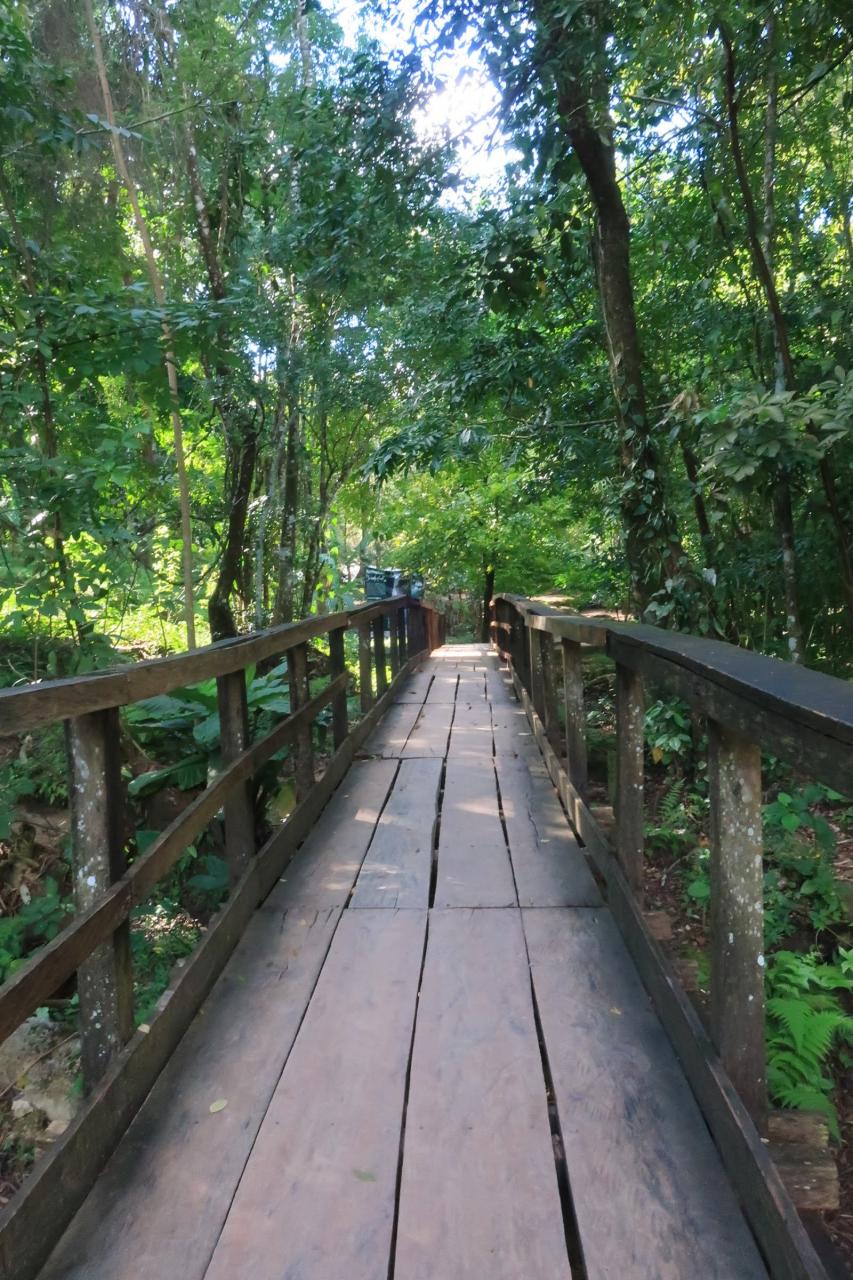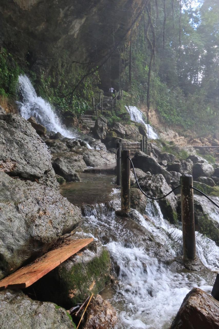 大きな滝の裏側を通り抜けたあとも遊歩道は続いているのですが、遊歩道自体が川のようになっています。一応、防水スニーカーを履いていましたが、上から浸水してしまうレベルです。泣く泣く引き返しました。