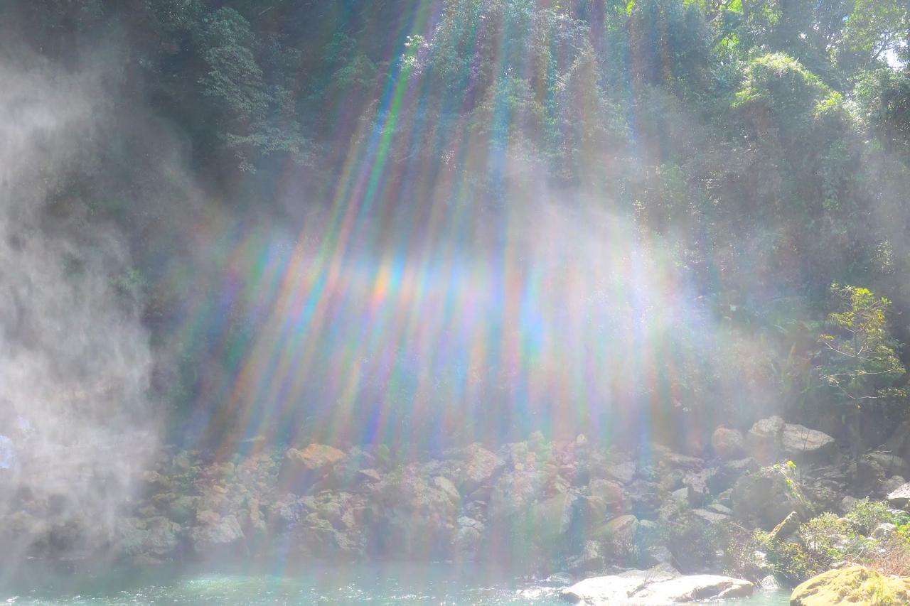 あちこちに水しぶきが舞っているので、太陽の光が当たってキラキラ。