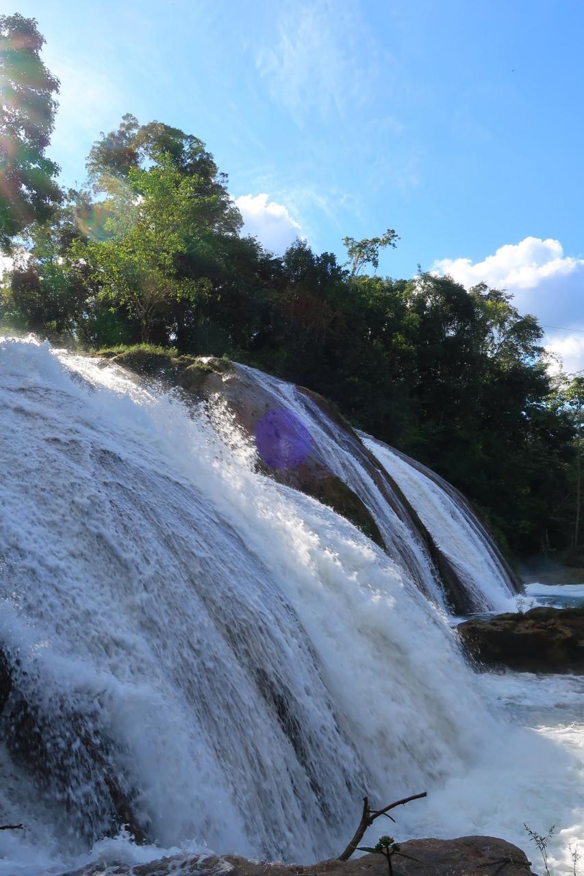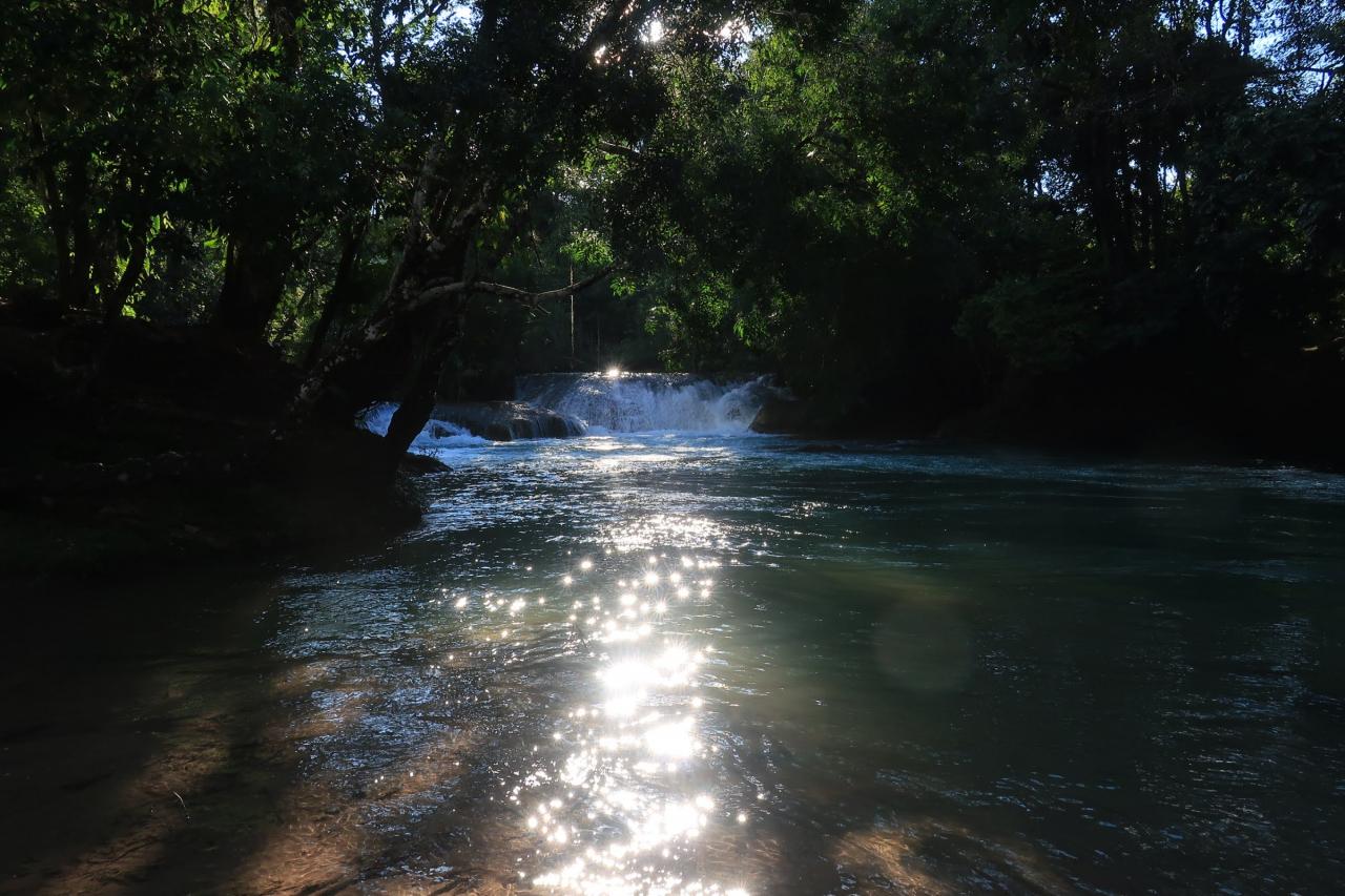 ジャングルに囲まれた大迫力の滝でした。ミソルハ(Misol-Ha)というのは先住民の言葉、マヤ語族の一つであるチョル語で「流れ落ちる水」とか「掃き清める水」とかいう意味だそうです。先住民にとってはきっと神聖な場所だったのでしょうね。