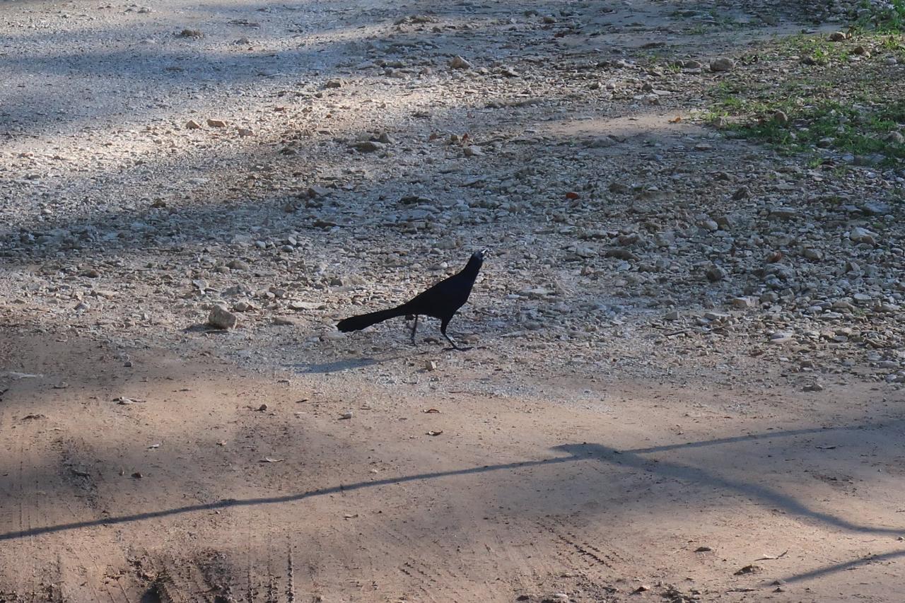 カラス? なんか尾が長いけど…。
