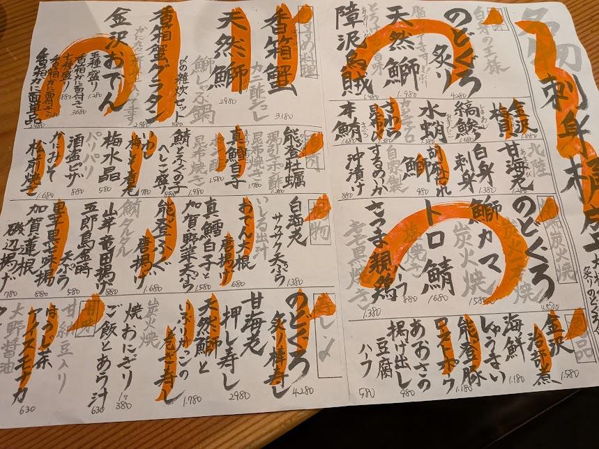 蟹、ぶり、金沢おでん、牡蠣、白子、さば、へしこ。。。