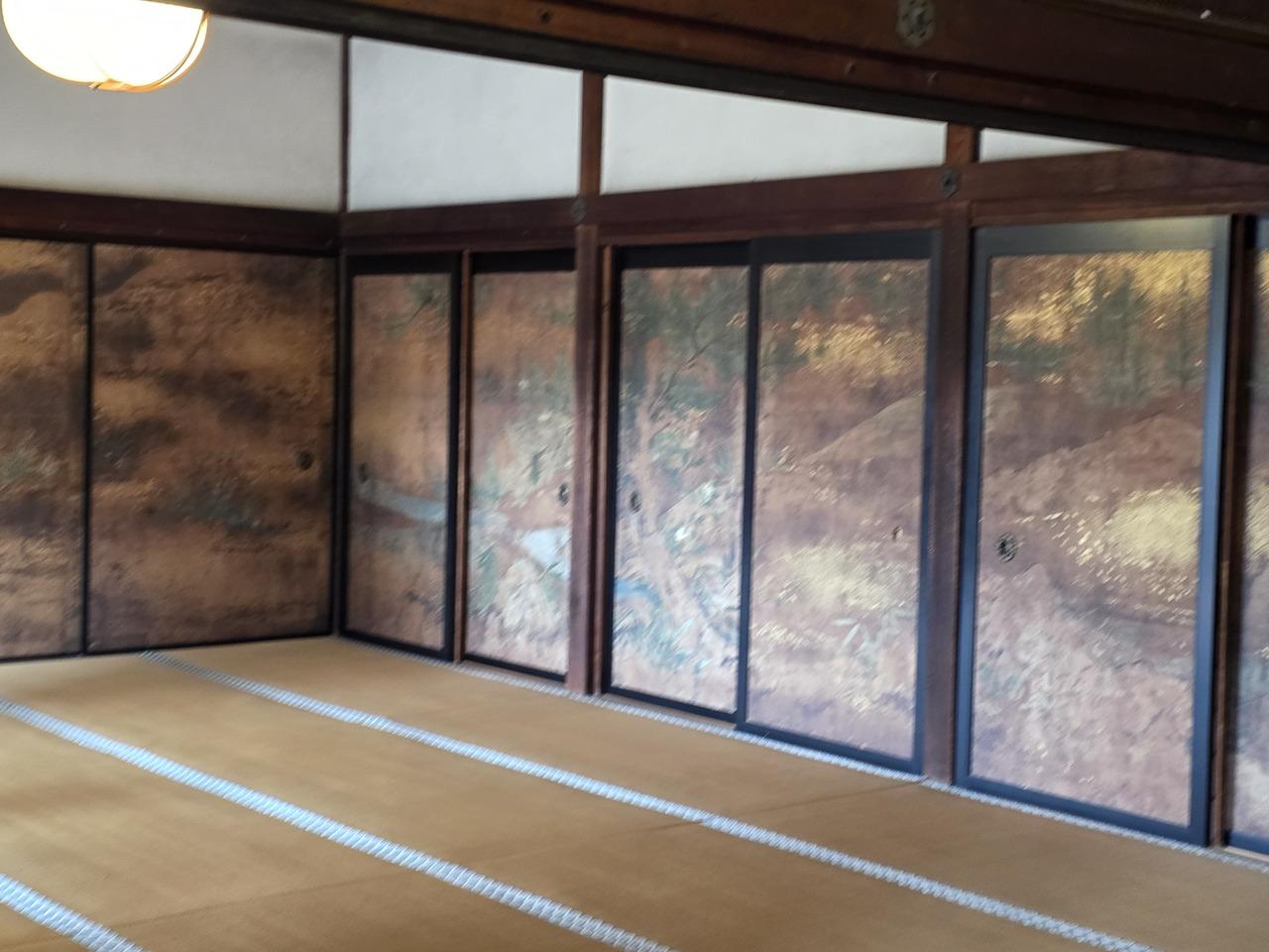 勅使之間の奥にある純浄観は秀吉が槍山で花見をしたときの建物を移築したものといわれていて通常は非公開です。平成に入って浜田泰介画伯によって描かれた襖絵です。