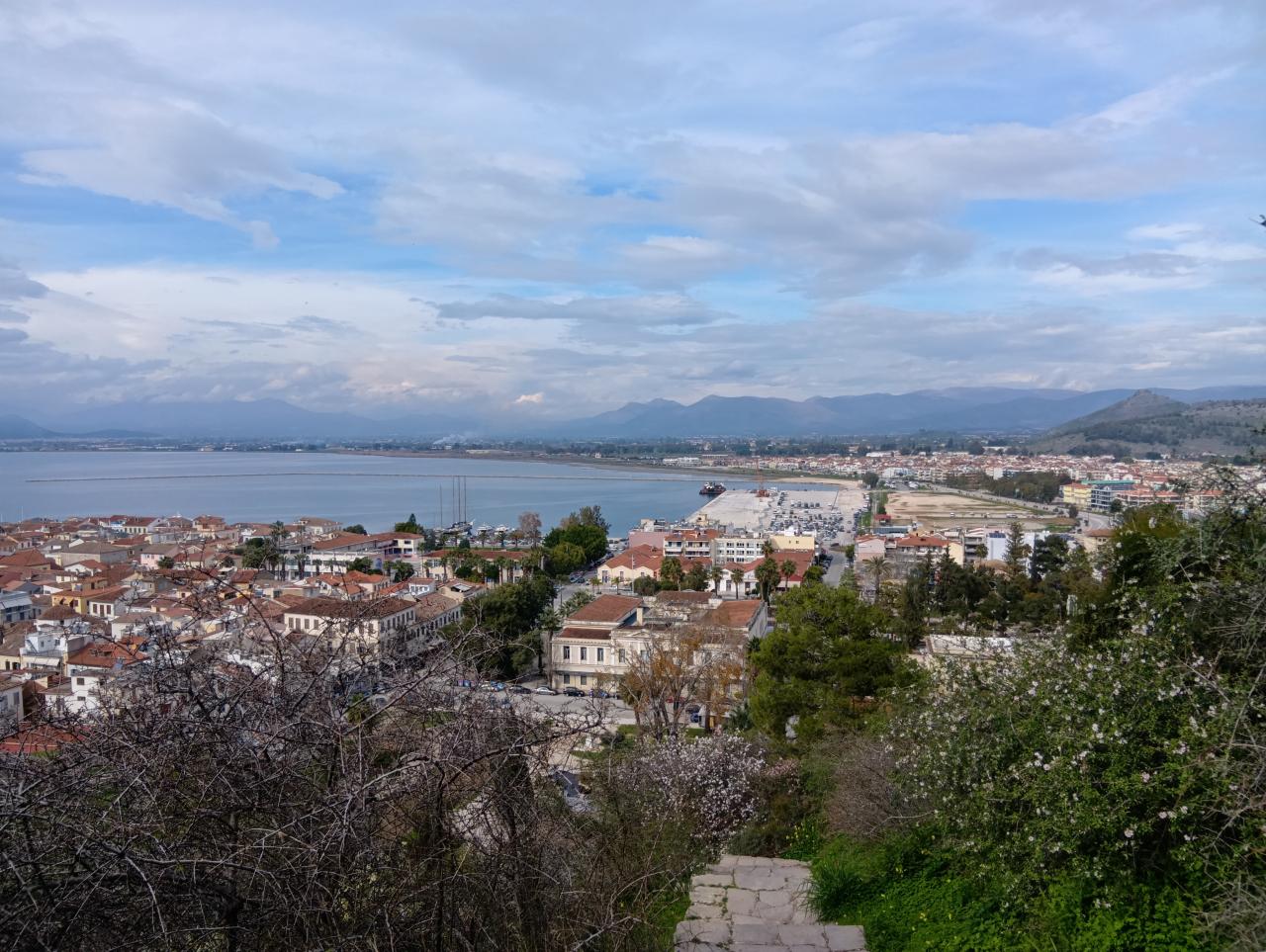 アクロナウプリア城の全容が見えてきました!今回は時間の都合上行けませんが、城塞の途中からでも絵葉書にも使われるような美しい光景に絶句します!