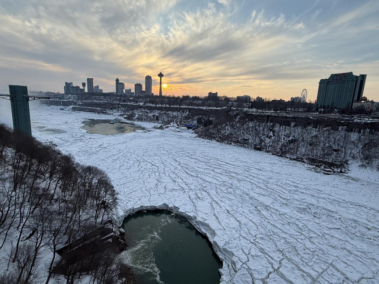 完全には凍結するのは何十年に一度らしいです。ナイアガラの滝 (カナダ滝) 滝・河川・湖