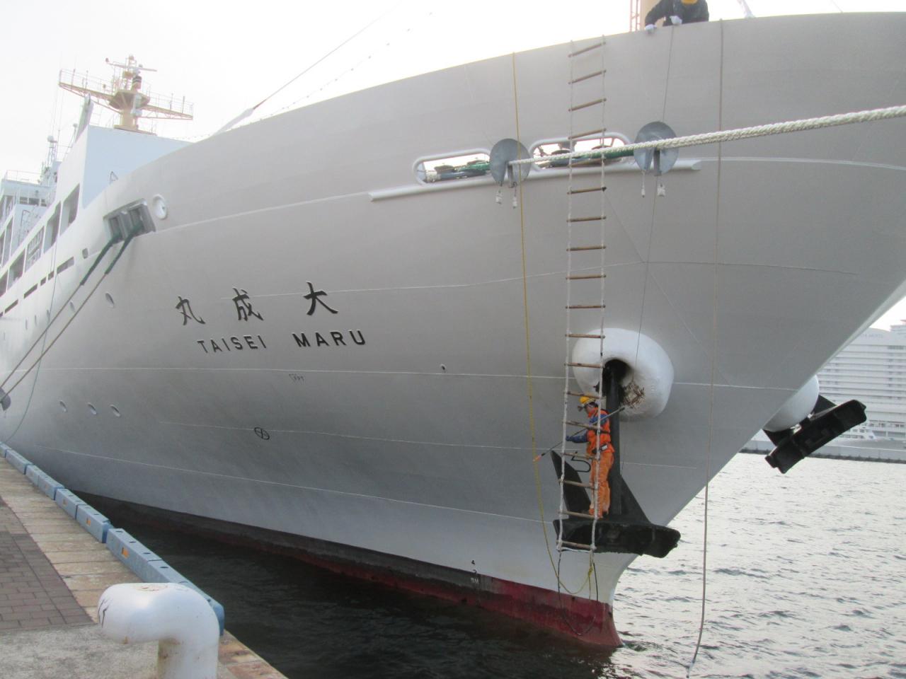 13:10、海技教育機構の練習船大成丸が停泊してペンキ塗り作業中でした