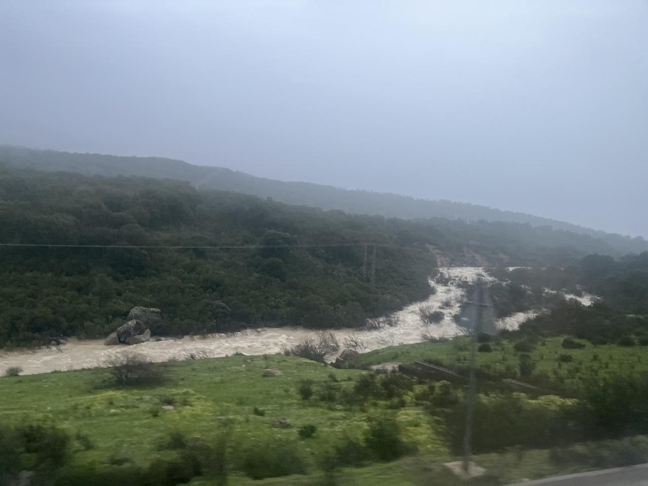 大雨のせいで