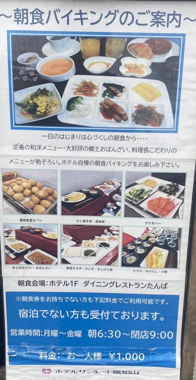 こちらの福知山アークホテルは朝食バイキングを泊まらなくても食べれます。AM6:30-9:00、なんと1,000円ポッキリ。