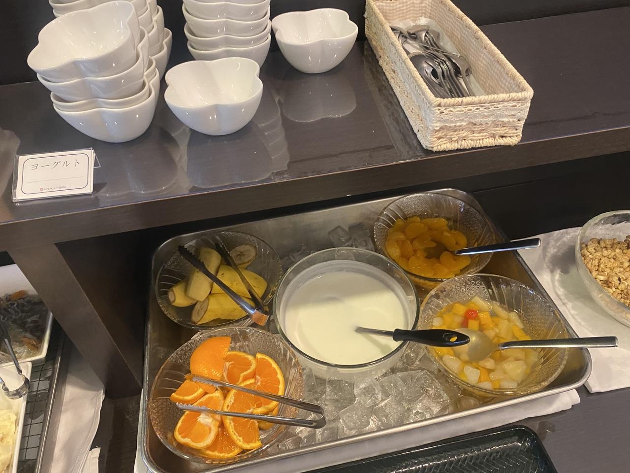 バナナ、オレンジプレーンヨーグルト、みかん、フルーツカクテル