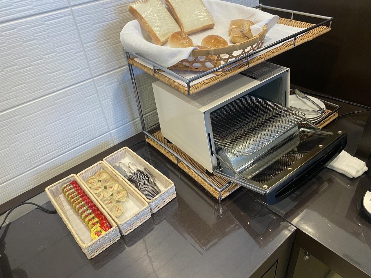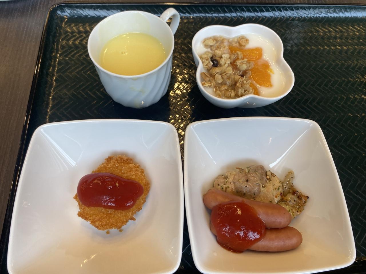 本日はホテルの朝食バイキングなので、空腹をスナックで満たします。