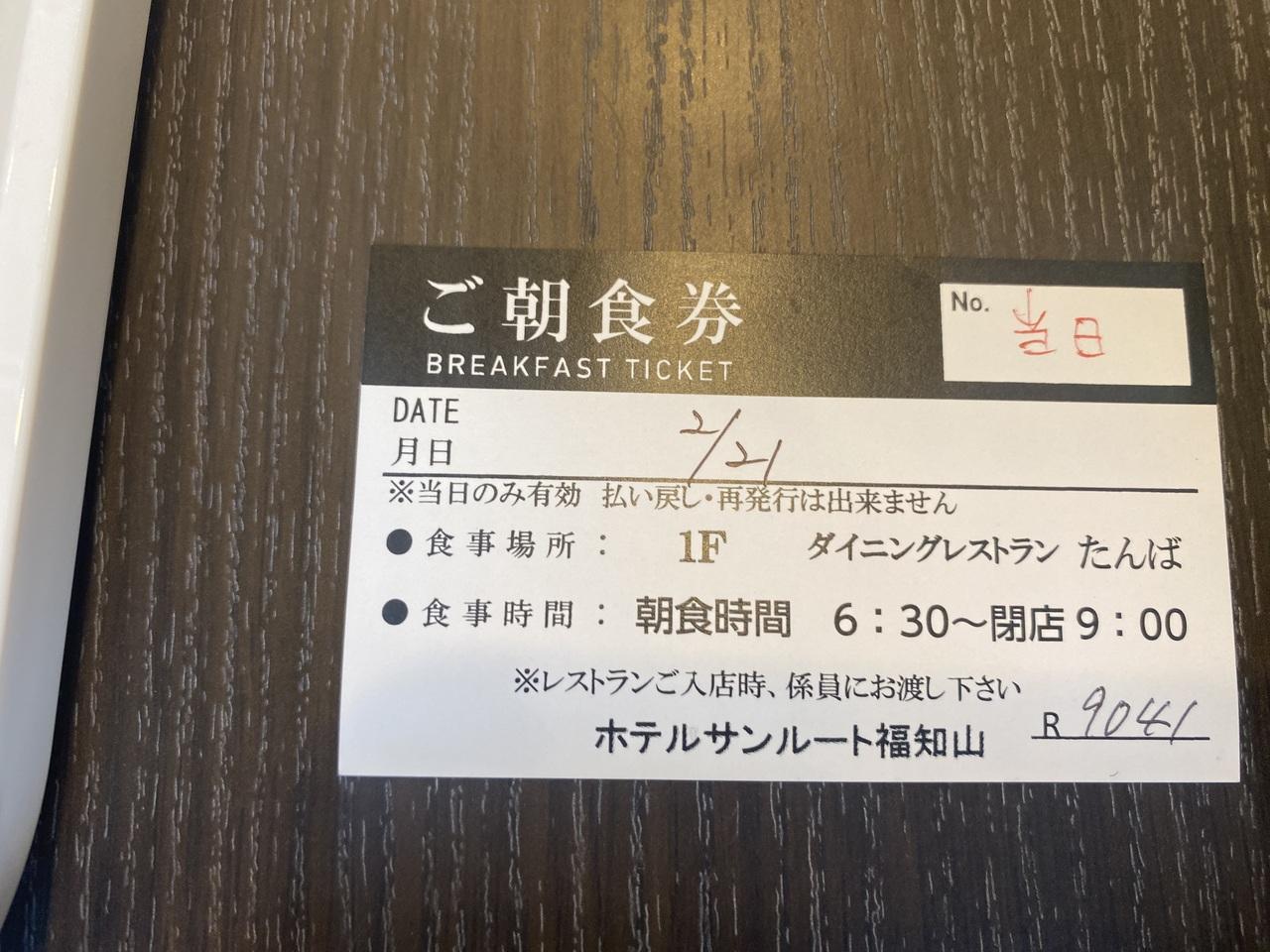 こちらが朝食券。
