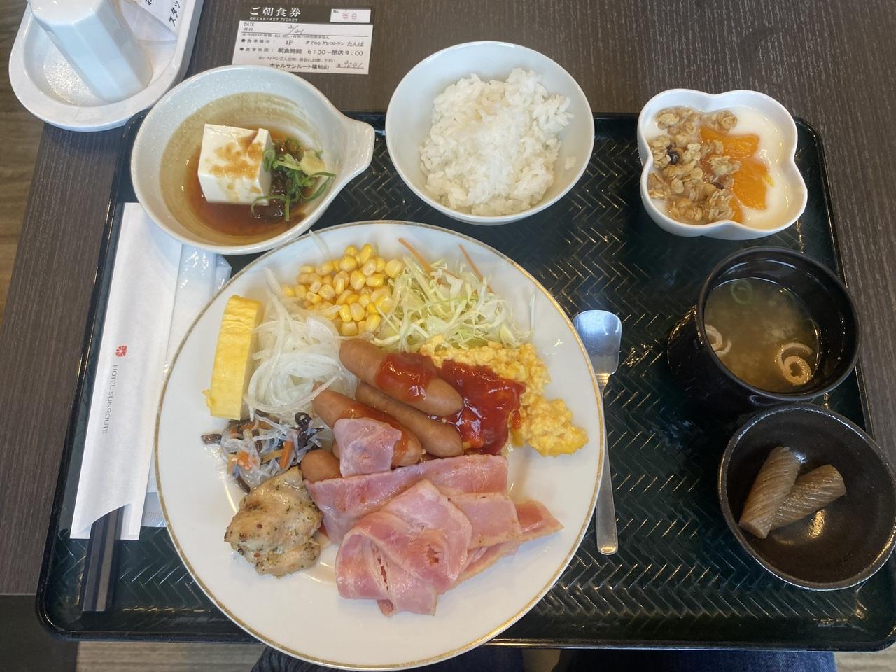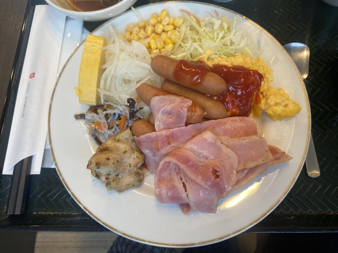ビジネスホテルはベーコンでなく、ロースハムが多いんですが、この値段でこの品数はトレビアン!ー!