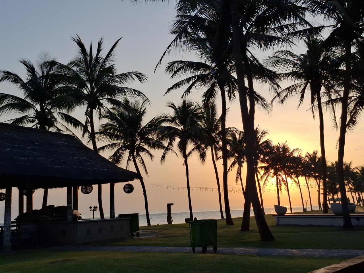 朝6時台、朝日をむかえます。ビーチ沿いのパームシルエットがきれいです。
