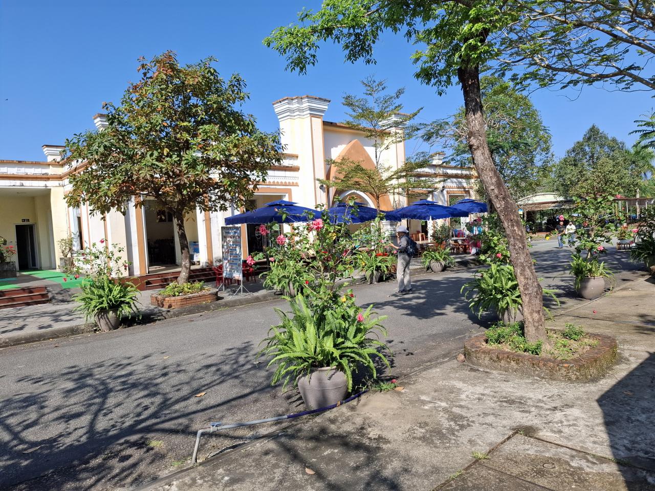 午前中ミーソン遺跡ツアー。ホイアンから1時間くらいかかりましたが、途中に地方の活気ある町や川、線路を越えたり、田園風景やお墓なども垣間見て、少しカーブする山道を上ります、かなり整備されたエントランスにつきました。