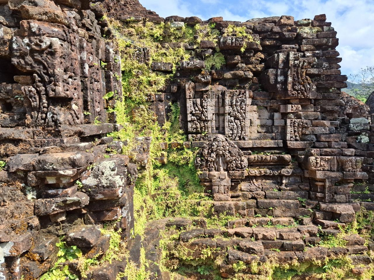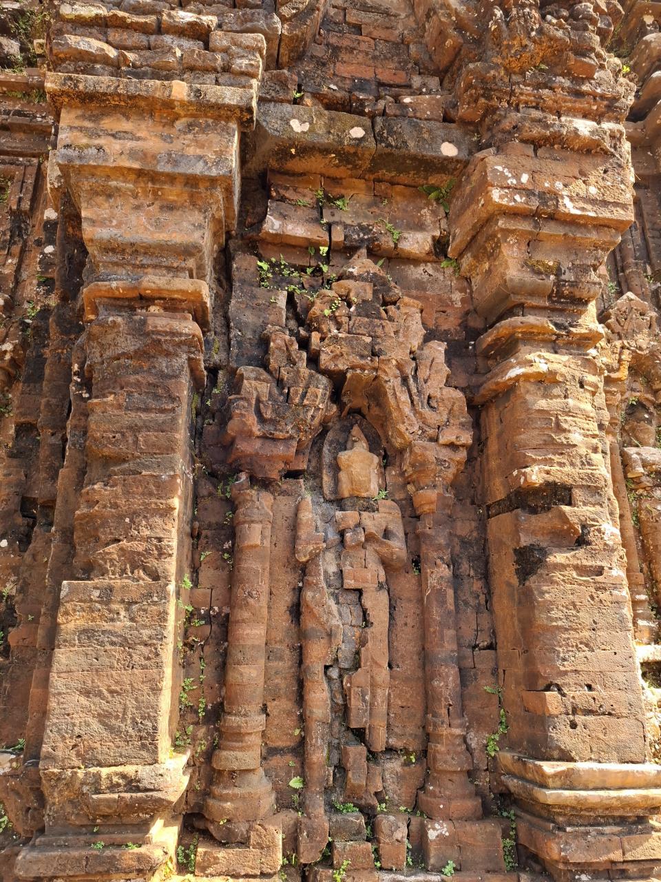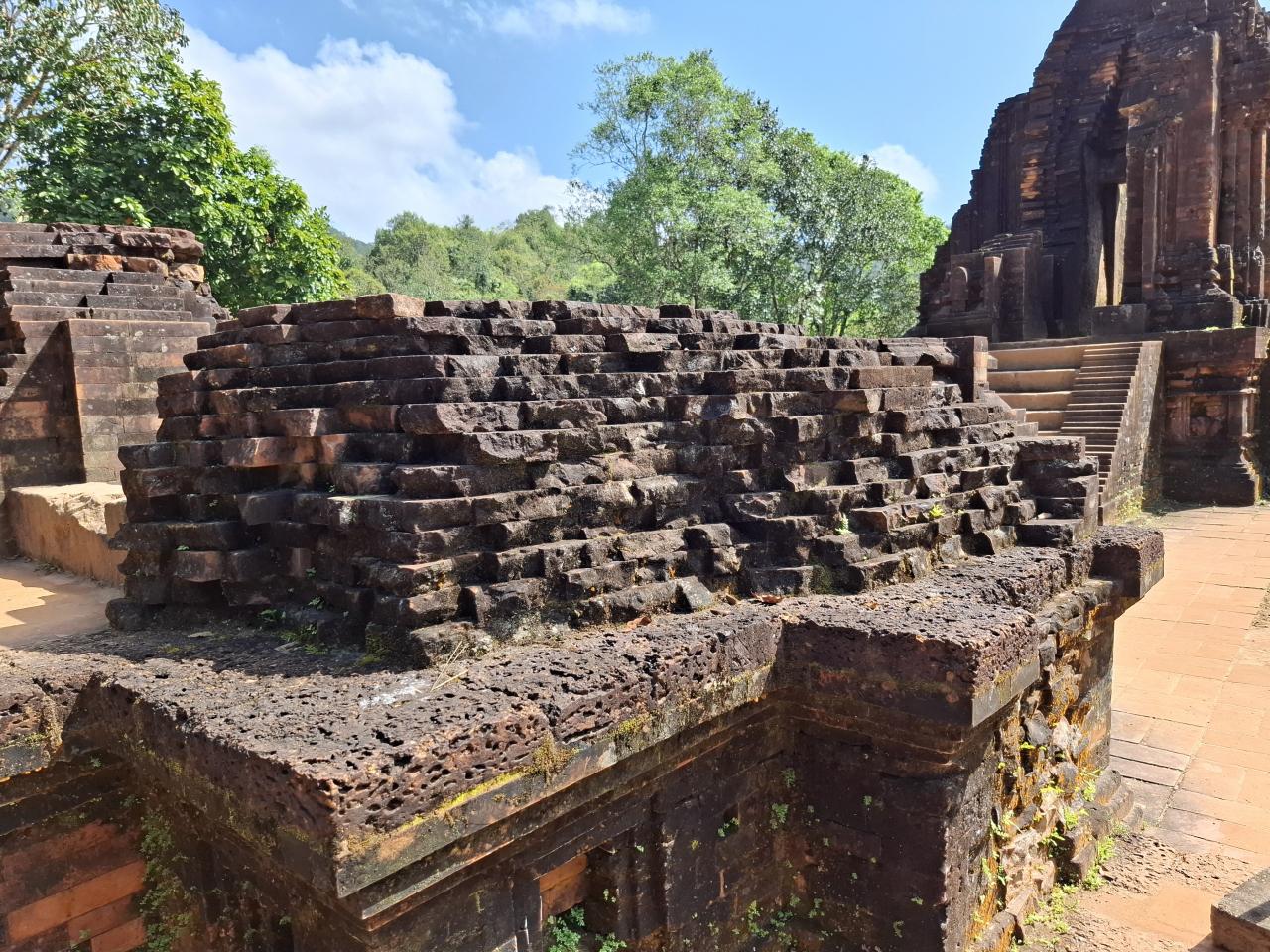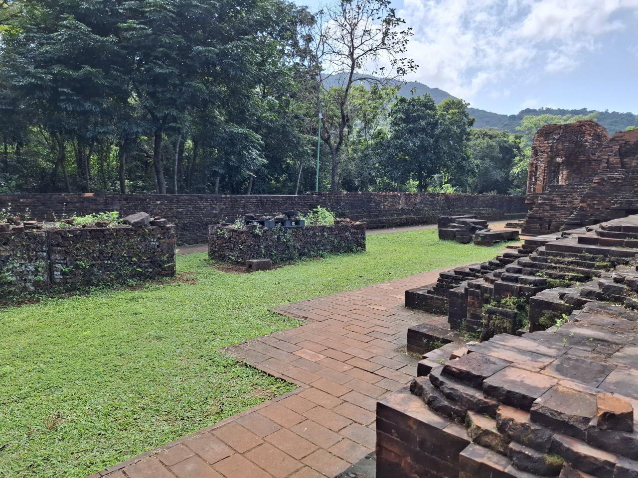 レンガ作りの7世紀から13世紀にかけての遺構、ベトナム戦争の爆撃によって破壊されたところもが多い